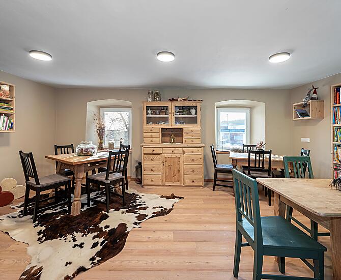 - Bauernstube (Holzboden, Bücher, Leseecke, WLAN, Spiele)