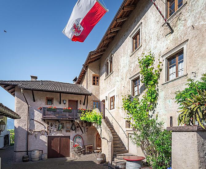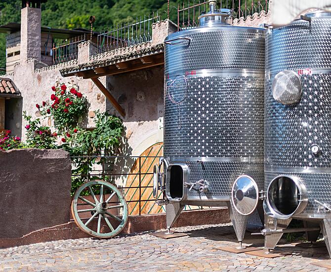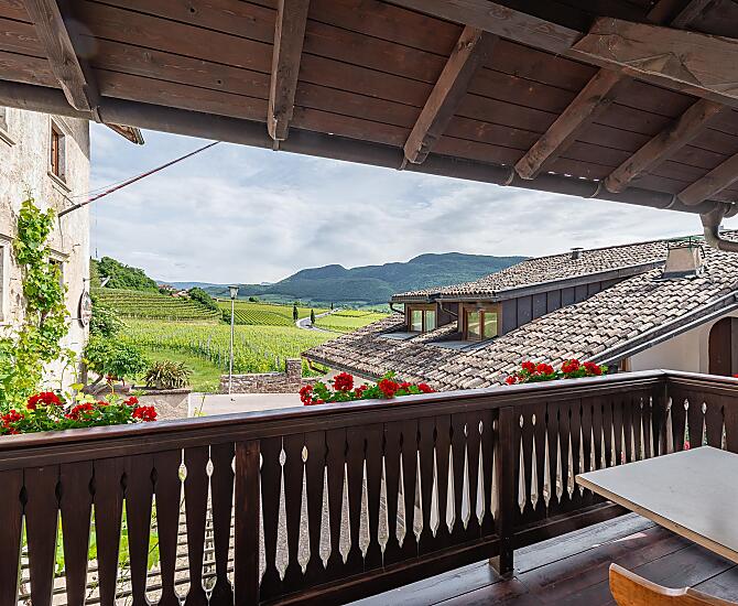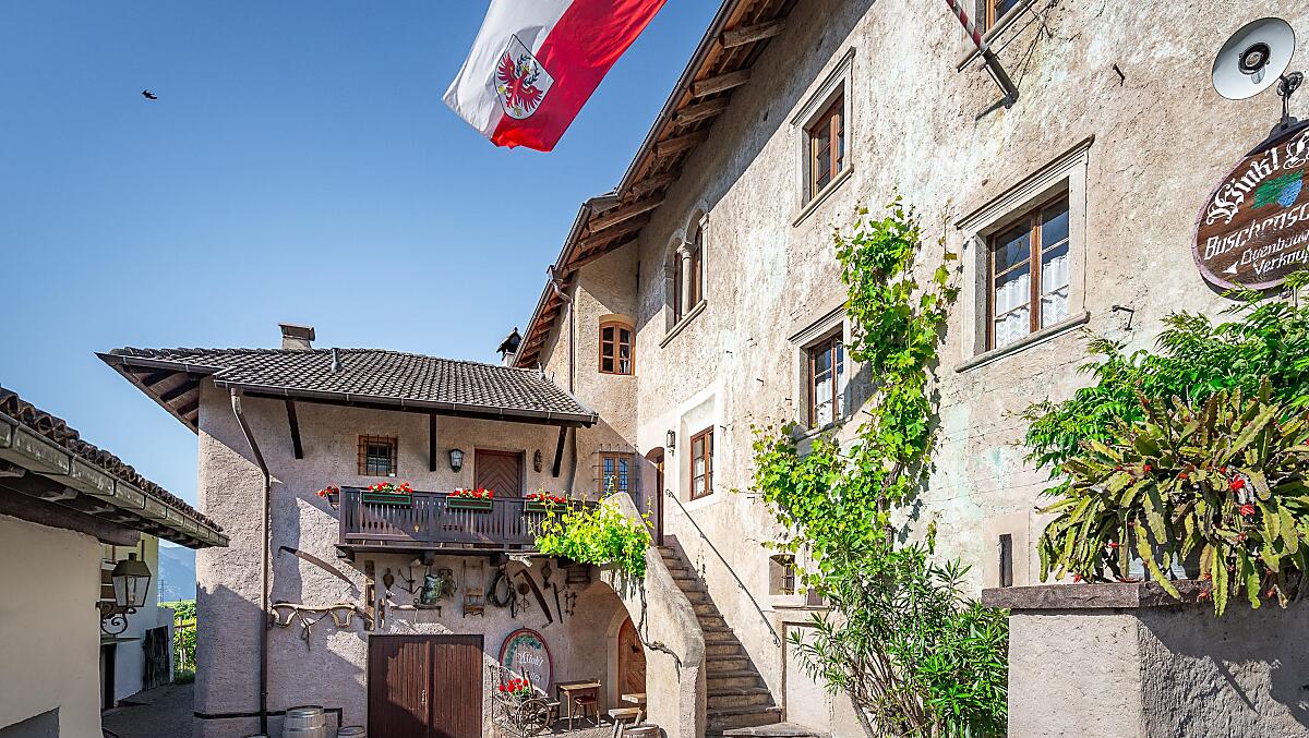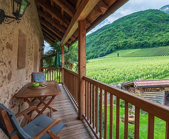 Renovierter, mittelalterlicher Hof inmitten der Weinberge, 10 Gehminuten vom Kalterer See mit eigener Buschenschänke und Weinkellerei.