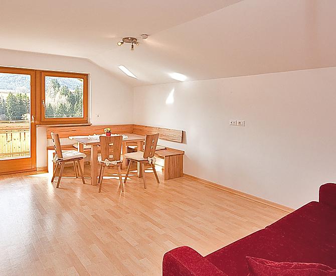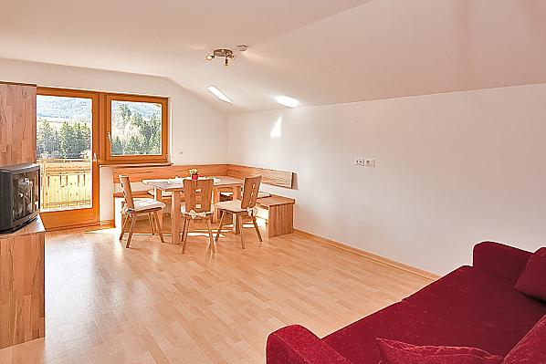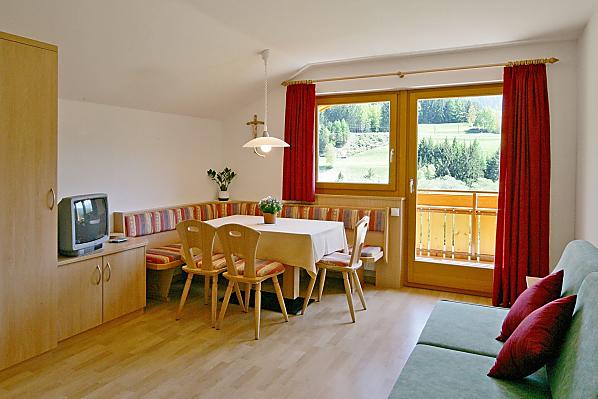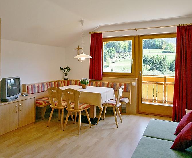 Unser sonnig gelegener Bauernhof liegt eingebettet zwischen saftigen, grünen Wiesen. Unseren Gästen bietet die günstige Lage des Hofes einen guten Ausgangspunkt für viele schöne Wanderungen und Radtouren. Durch die zentrale Lage sind viele interessante Ausflugsziele im ganzen Pustertal schnell zu erreichen. Nach einem Tag voller neuer Eindrücke erwartet Sie eine gemütlich eingerichtete Wohnung zum Entspannen. Sie können den Tag allerdings auch bei einem Grillabend oder einem Lagerfeuer ausklingen lassen. Alle Wohnungen verfügen über einen Südbalkon mit Panoramablick auf die wunderschöne Bergkulisse.