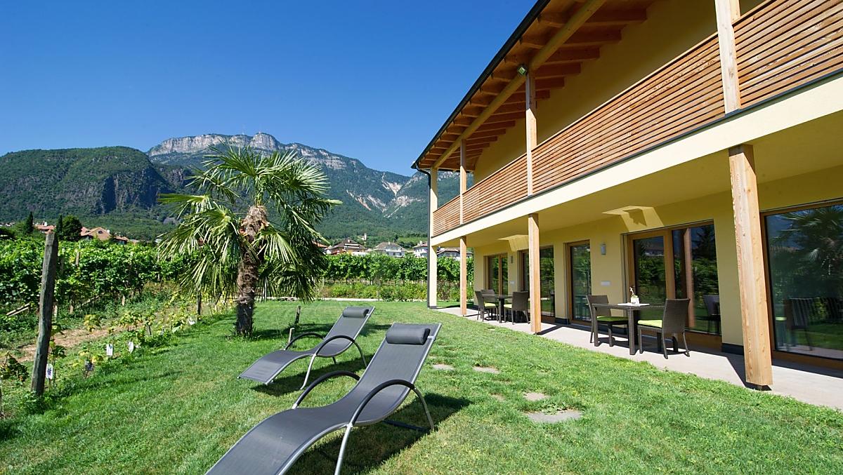 Urlaub mit Genuss und Wohlfühlfaktor auf dem Wolfganghof in Eppan, im Herzen Südtirols Südens. Unsere Ferienwohnungen liegen ebenerdig zum Garten mit überdachter Terrasse. Eingebettet inmitten der Weinberge genießen Sie einen wunderbaren Ausblick auf das Mendelgebirge und die Dolomiten. Es erwarten Sie herrliche Wander- und Fahrradtouren, die Montiggler Seen, erlebnisreiche Ausflüge und Besichtigungen der zahlreichen Burgen und Schlösser in der burgenreichsten Gegend Südtirols.