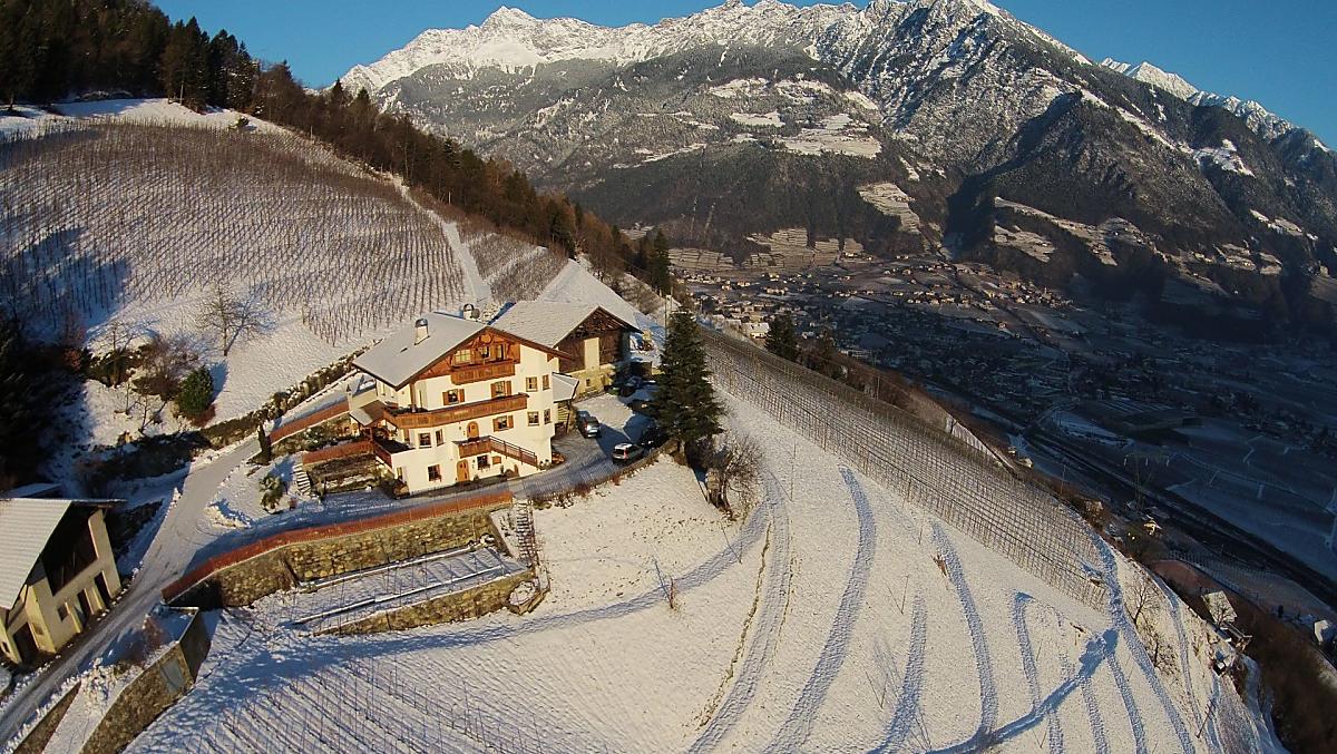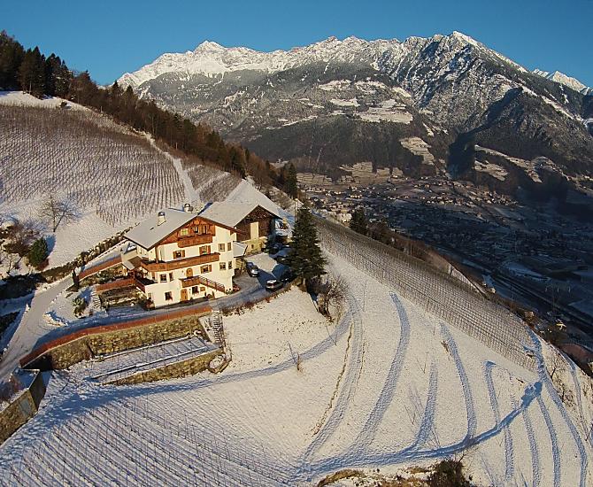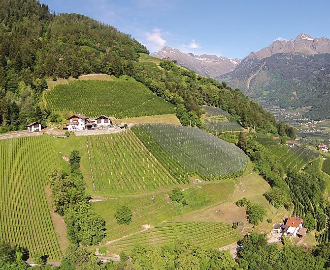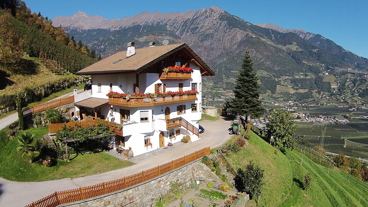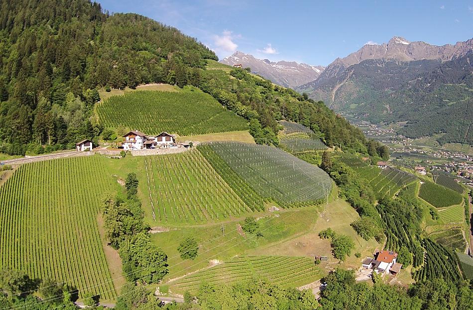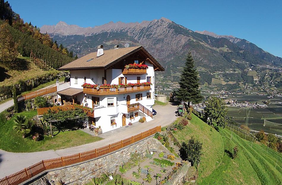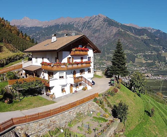 Unser Hof befindet sich in ruhiger, freier Lage mit einmaligem Blick auf Meran und das Burggrafenamt.