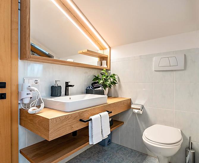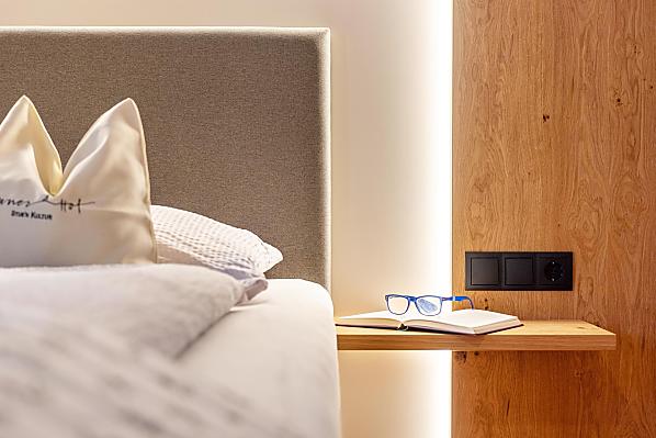- Hofeigene Produkte beim Frühstück: Speck, Eier, Honig, Fruchtaufstriche, Sirup, Fruchtsäfte, Brot, Backwaren, Frisches Gemüse je nach Saison, Frisches Obst je nach Saison