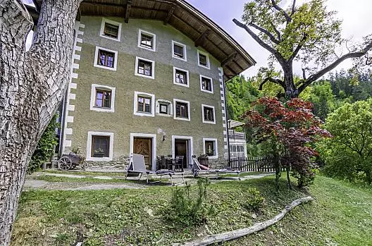 Die meisten Bauernhäuser hier sind niedrig und aus Holz gebaut. Dazwischen fallen aber einige burgartige Gebäude auf, von Efeu umrankt und mit alten Sonnenuhren oder Fresken an der Hausmauer verziert. Diese Schildhöfe sind einzigartig in ganz Südtirol. Sie waren die Wohnsitze von Bauern, die im Mittelalter durch ihre Waffendienste besondere Privilegien erworben hatten. Einer der elf Höfe steht im Ortsteil Gomion in St. Leonhard, der einschiffigen Kirche Maria Lourdes aus 1891 gegenüber. Im Urlaub auf dem Bauernhof in St. Leonhard in Passeier sollte man sich einen Abstecher zu den Schildhöfen nicht entgehen lassen.
