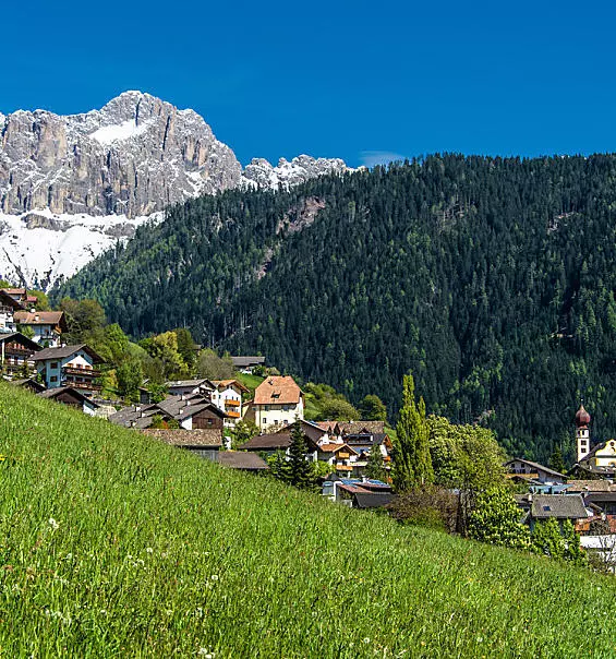 If you fancy spending your holiday beneath the Schlern, you have a choice of three municipalities: Kastelruth, Völs am Schlern and Tiers. They have one thing in common, in that they all make an ideal base for excursions into the countryside. Each of them has their own advantages. The name of Kastelruth may mean something to you: the 'Kastelruther Spatzen' group, a folk music group famous all over Europe, hails from this village. Fans of this all-singing, all-playing group meet twice a year in Kastelruth. In mid-June at the 'Spatzen Open Air' festival and in mid-October at the 'Kastelruther Spatzenfest'. Of course, this is not the only thing that the parish has to offer. The lower terminal of the cable car to car-free Seiser Alm is here, making it a base for lots of hikes not involving a car. Options for hiking destinations are Salegg and Hauenstein castle ruins, both steeped in legend. The well-known poet, Oswald von Wolkenstein, lived and wrote poetry at Hauenstein.
