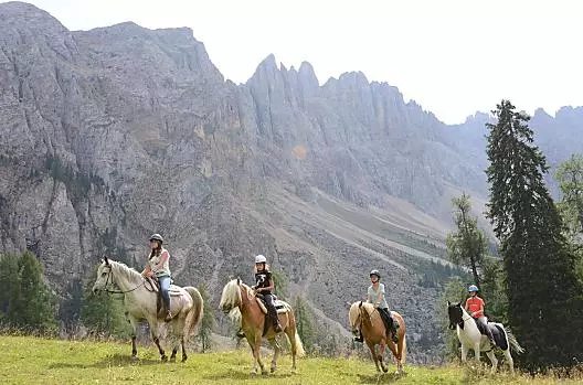 Some farms in South Tyrol are completely geared towards horseback riding holidays. There, beginners can enjoy individual riding lessons in the paddock. During the try-out session, the farmer will give you helpful tips so that later on you can sit firmly in the saddle. With the sun behind you, you'll trot through idyllic forest clearings and gallop through lush mountain meadows on guided rides. Passionate horse fans are in the right place at a specialised equestrian farm. Professional riding lessons and guided day rides are regularly on the programme at these farms. A member of the farm family is also a certified riding instructor and is always at your side. Variety is guaranteed for beginners and advanced riders on a riding holiday in South Tyrol.