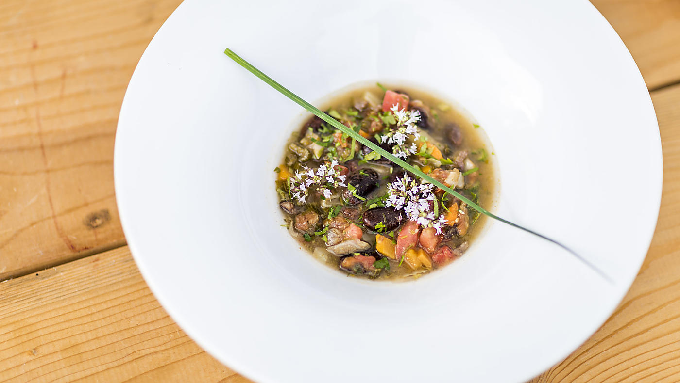 Beans have always been grown on the farms and are an important source of protein. This soup is nutritious and warming.
