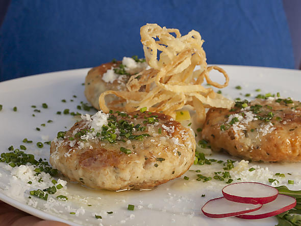 In the meantime, brown the chopped veal steaks in a frying pan in hot oil and season with salt and pepper.