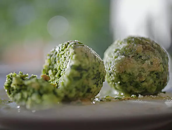 StepBoil the ravioli in salted water for 3 to 4 minutes, place on a plate and garnish with grated hard cheese, browned butter, slices of 'Bauchspeck' and chives. -