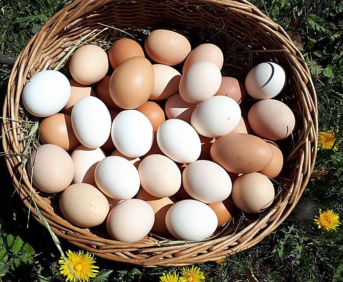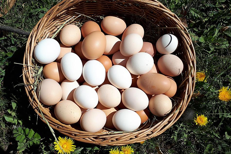 eggs, seasoning, fresh vegetables in season, fresh fruit in season