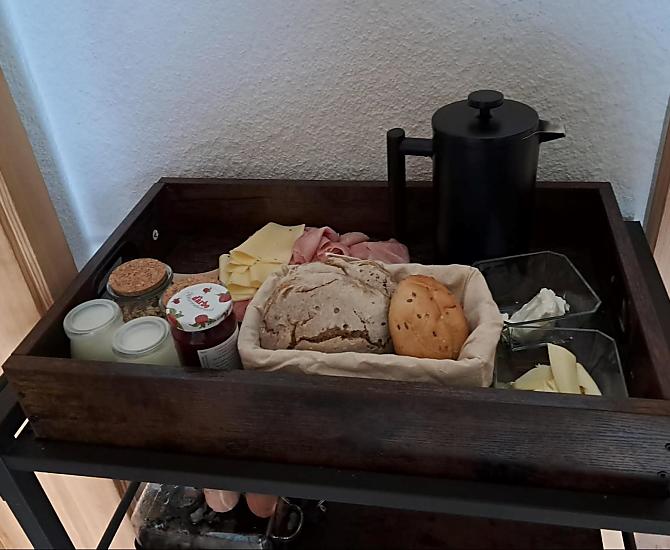 - Farm's own products at breakfast: milk, yoghurt, cheese, butter, eggs, fruit jams, bread, baked goods