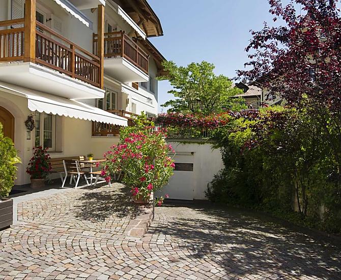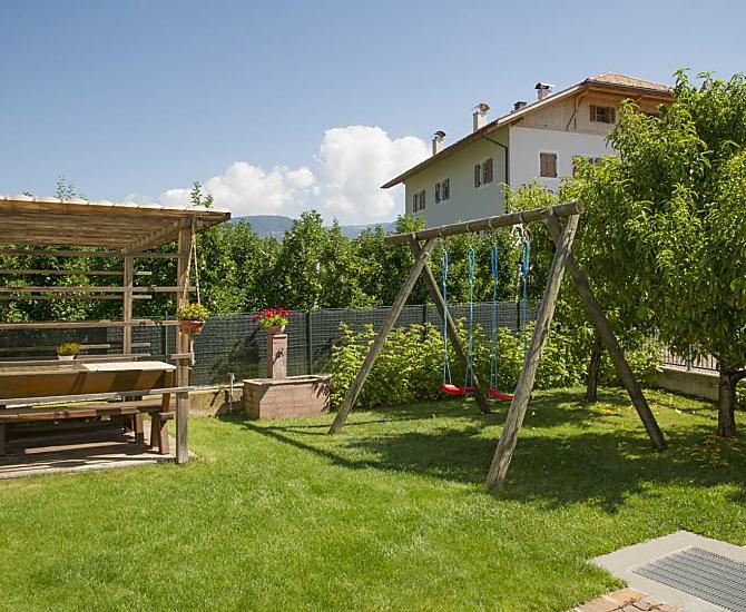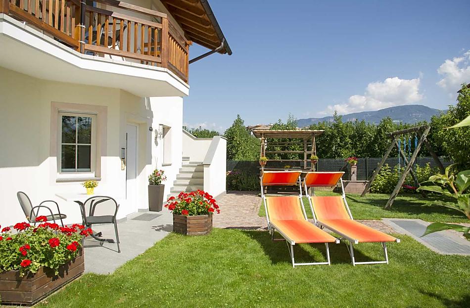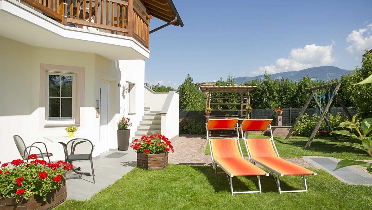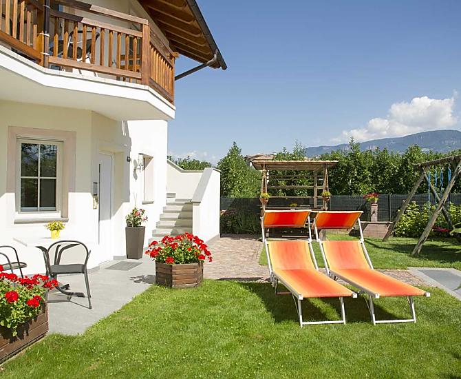 We await you in the picturesque wine village of Missian im Überetsch. Our newly built house in a quiet location, surrounded by orchards and vineyards, offers a wonderful view of castles and palaces and is the starting point for beautiful excursions and hikes. Why not go on a castle hike or enjoy the orchards and vineyards of the Überetsch? Missian is the appropriate starting point for this. Or you pack your swimming trunks and go to Lake Montiggl or Lake Kaltern, both of which are in the immediate vicinity. The nearby cities of Bolzano with the world-famous Ötz Museum and the arcades, as well as Meran with the Gardens of Trauttmansdorff and the thermal baths, invite you to stroll and linger, and the Dolomites are also on the doorstep.