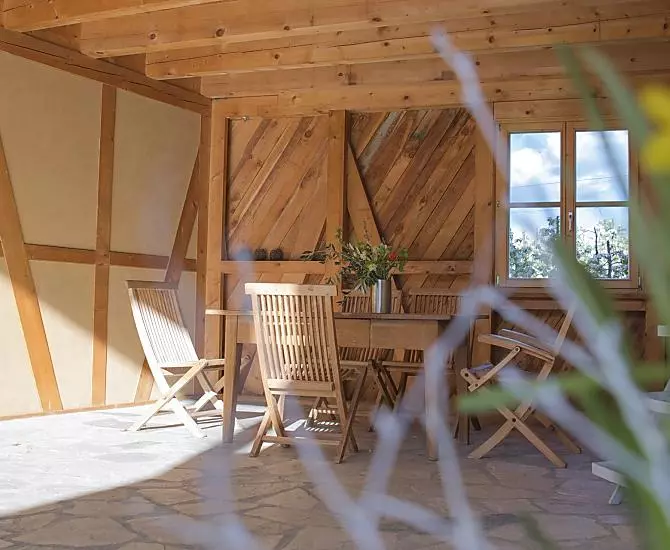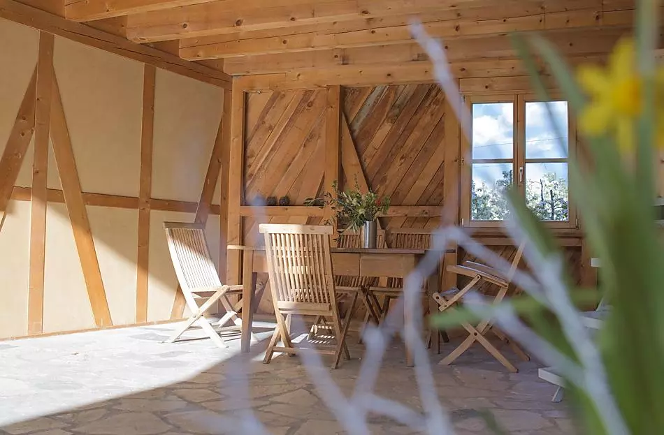 We invested a lot of joy and energy in the construction of our organic half-timber house with clay. We have been a certified organic farm with fruit and wine growing since 1996.