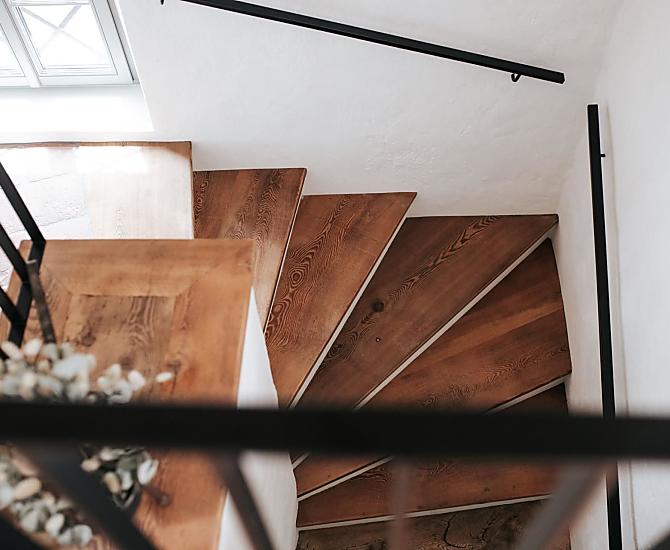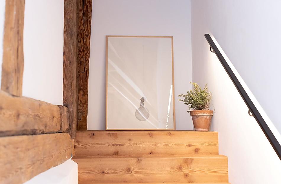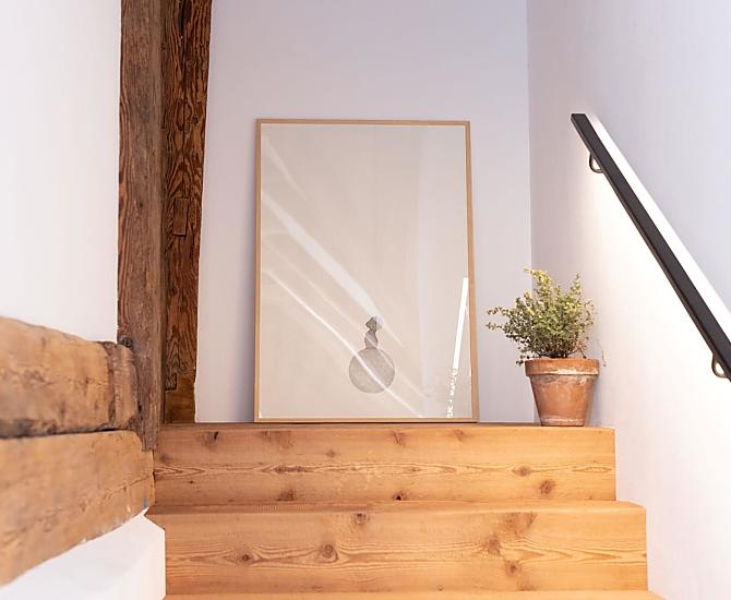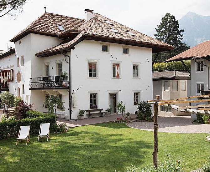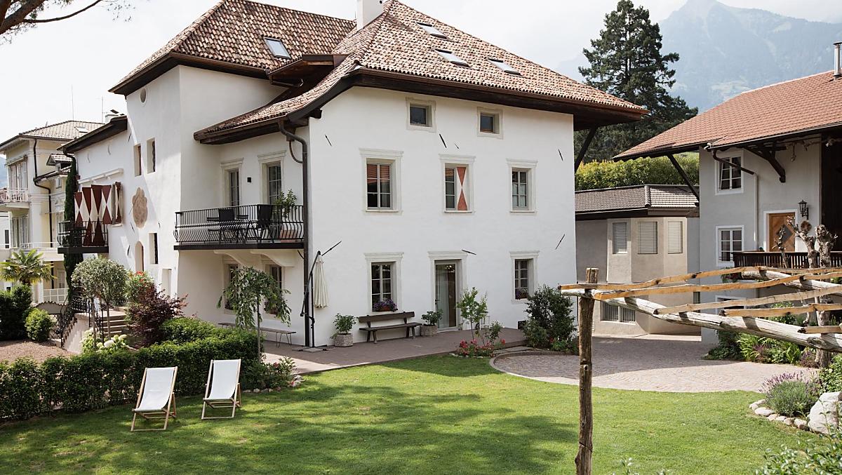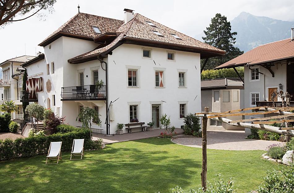 This listed building lies at the heart of Obermais, bordering on meadows and vineyards and a few minutes' walk from the Old Town of Meran. Layshof makes the ideal base for excursions around Meran or for going on tours to discover the spa town's cultural variety. The house was renovated with lots of attention to detail and respect for the historical building materials. The vaulted cellar with romanesque walls, the large stately central hall with intricate stucco ceiling, terracotta floors and chimneys, as well as the baroque coffered ceiling make history tangible. The great care paid to little details such as the private sauna on the roof terrace, the 'secret chamber' above the arched gateway or the lift in the former latrine tower lend Layshof house and each of our flats its own character. Fancy a holiday steeped in history?