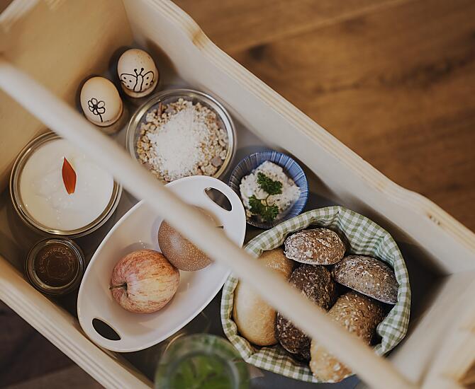 - Farm's own products at breakfast: speck, sausages, eggs, fruit jams, cordial, fruit juice, dried fruit, chutney, pickles, herb teas, seasoning, bread, baked goods, fresh vegetables in season, fresh fruit in season