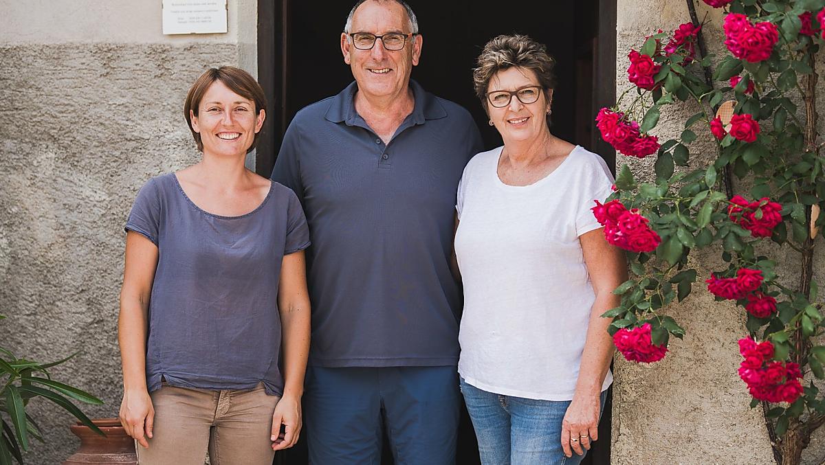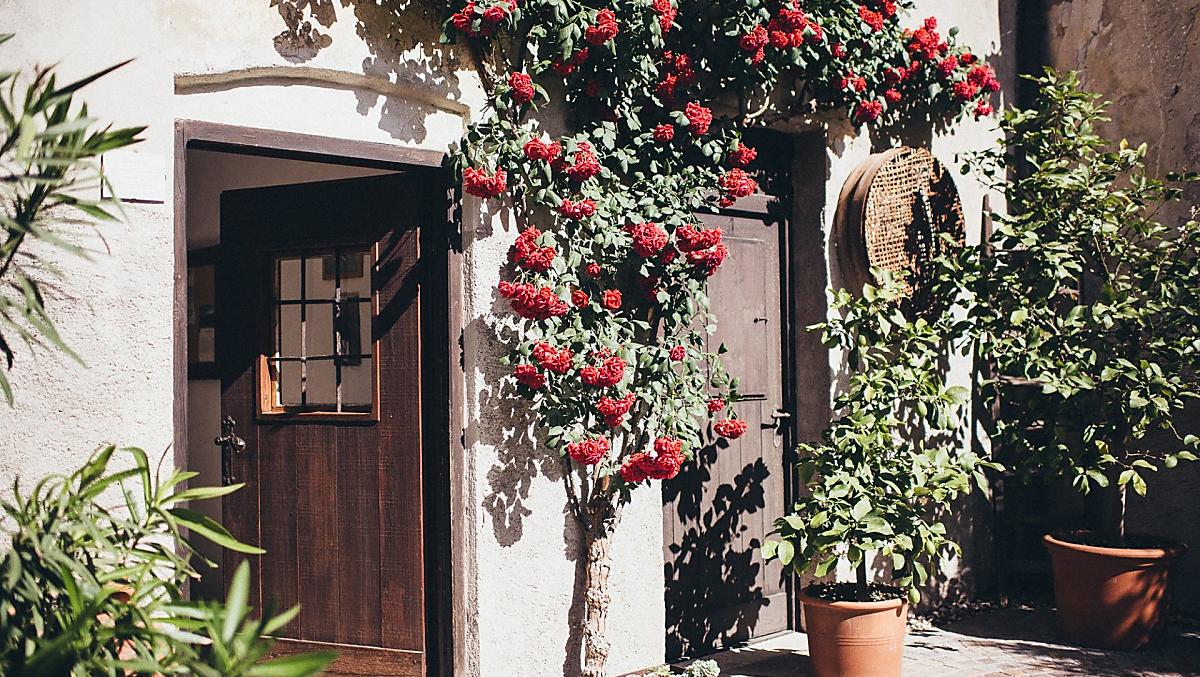 The Rynnhof is located in one of the oldest quarters of Tramin. Like our property itself, the surrounding buildings also have a medieval core. Stone-framed window reveals, biforia and arched gates characterize the façade design. On the valley side, a spacious garden borders our winery. Here you can ponder your thoughts in the shade of spruce trees or get stuck into a good book next to laurel bushes. On the mountain side, an in-house winery with Gewürztraminer vines stretches along the slope. In this so-called Anger you can experience the work in the vineyard up close. Wine production is the heart of our farm, which we have been managing according to biological and organic guidelines since 2011.
