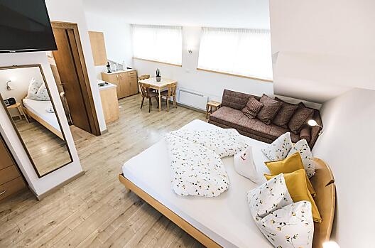 Lean back and start your vacation here and now. In the midst of the Meran apple orchards, where young people have been working in recent months to make your holiday at the Auhof even more relaxing and unique: with more comfortable rooms, a new pool and a breakfast room with a fantastic view. Let yourself be surprised... Open your eyes, the time has come: finally vacation time.