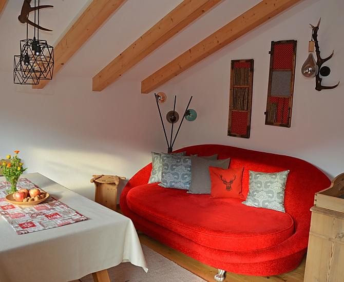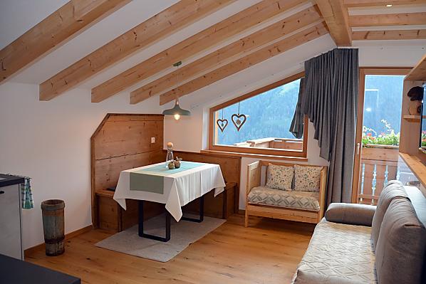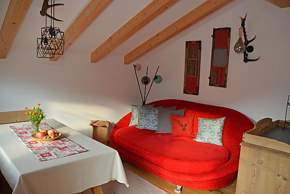 Our beautifully situated farm is at 1,050 m above sea level, surrounded by forests and blooming meadows. The fodder for our animals is traditionally mowed by hand because the meadows are very steep. We rebuilt the house in 2013 and there are two holiday apartments on the top floor. Our guests will find various wild herbs, herbs in the garden and various berries and fruits around the farm. The children will certainly not get bored, because there is a large playground for them. A cozy get-together, barbecue facilities and hospitality await you with us. The farm offers various hiking and walking opportunities where you can recharge your batteries.