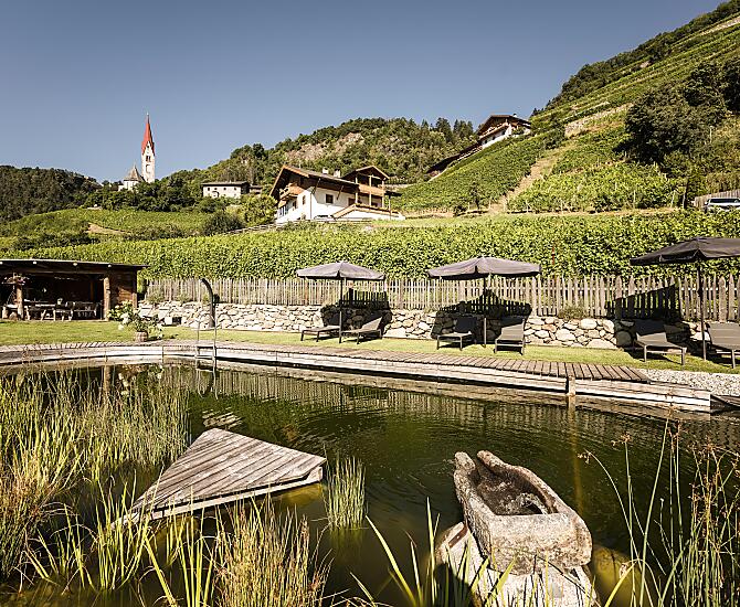 The Bachmannhof is located in Feldthurns/Schrambach, in the heart of the Eisacktal valley. The place is considered an ideal starting point for South Tyrol's most popular skiing and hiking areas and is just 200 m away from the cycle path. The farm is 7 km from Brixen. The accommodation offers, among other things, free parking spaces and the Südtirol Guest Pass, free WiFi, a natural pond and spacious holiday apartments in the midst of organically farmed apple trees and vines. New: sauna