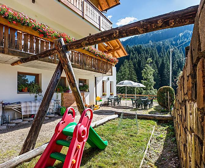 The Bachwieslhof is located in the middle of the fascinating mountain world of Proveis on the Deutschnonsberg plateau at 1,250 m above sea level. It is a typical mountain farm with cows, calves, chickens, turkeys, rabbits and a cat. A traditional vegetable and herb garden complete the farm.