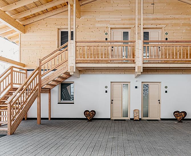 Experience an unforgettable holiday on our idyllic farm, nestled in peaceful, green mountain meadows. Enjoy the secluded, unspoilt atmosphere and let your mind wander. Our new, modern holiday flats in a charming wooden building offer the highest level of comfort. Perfectly located just a few minutes from the ski area, our farm is the ideal holiday destination for nature lovers, hikers and winter sports enthusiasts. Discover pure relaxation in the midst of mountains!