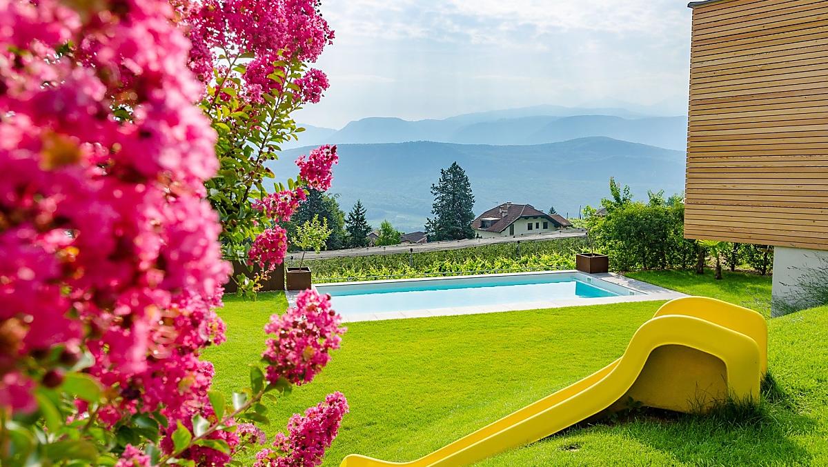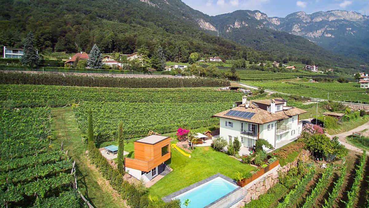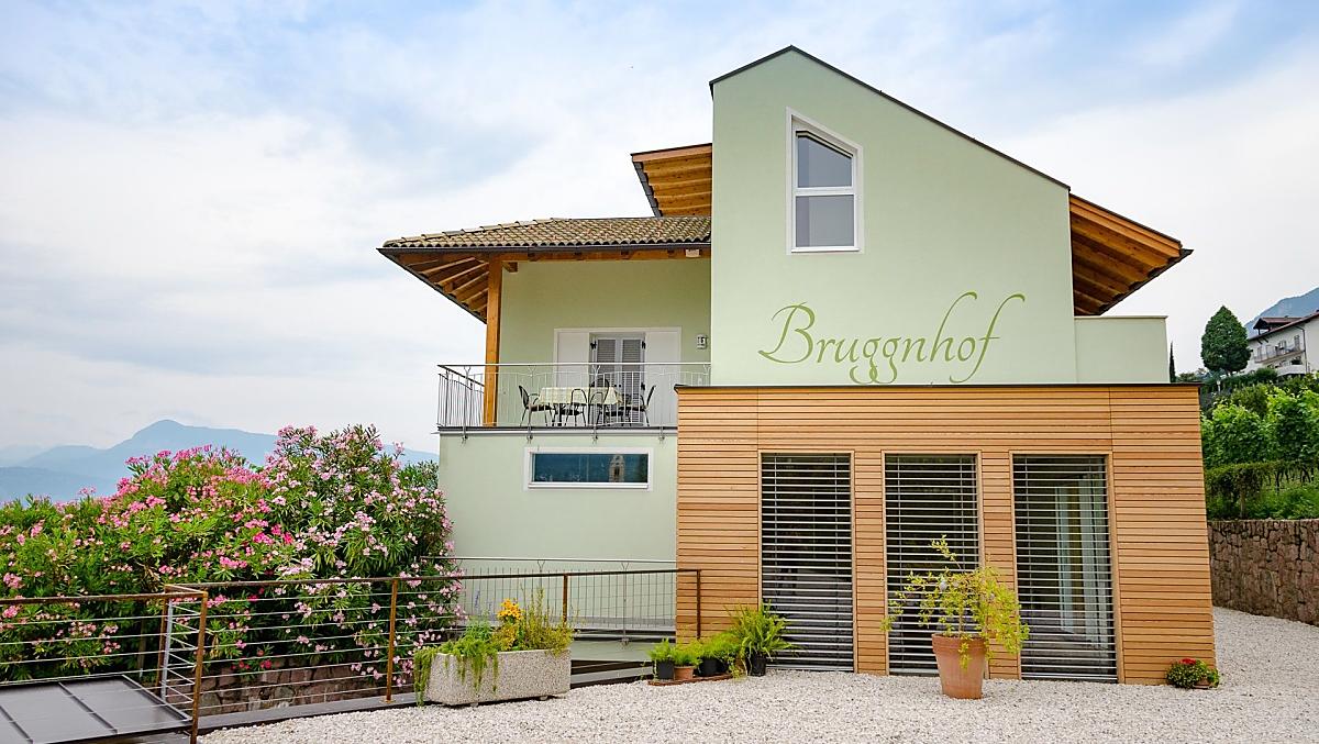 Right in the middle is our Bruggnhof. Our fruit and wine farm is in a very quiet location surrounded by greenery. Our spacious, lovingly furnished holiday apartments will make your holiday an experience. From the balconies, terraces and the large sunbathing lawn you can enjoy the wonderful panorama with a view of the Dolomites. The wine cellar and lounge ensure enjoyment and well-being.