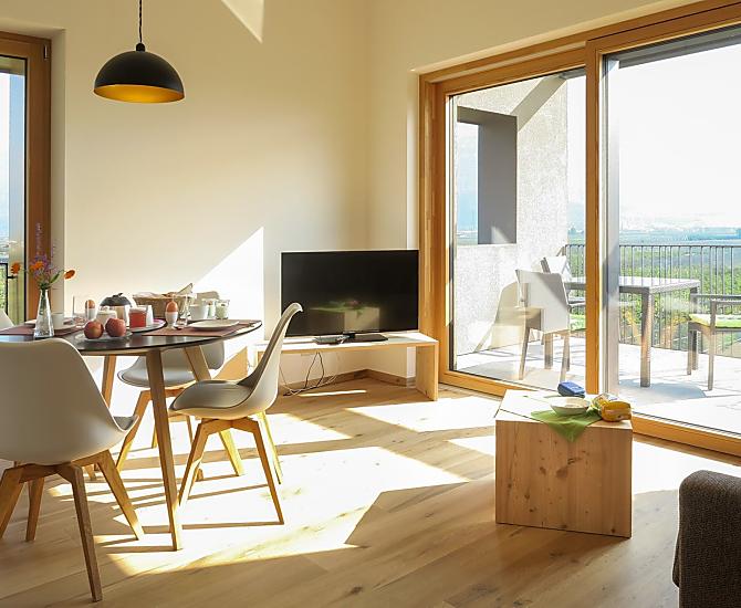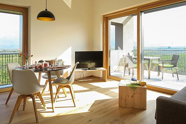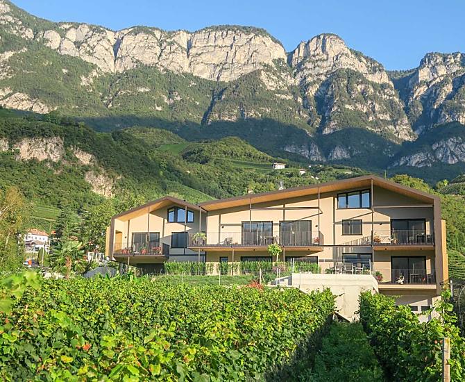 Stylish holiday with fruit and wine growers. The newly built Brunnenhof is located in the south of South Tyrol, in the Entiklar district of Kurtatsch. Two high-quality holiday apartments with a view over the South Tyrolean lowlands offer holidaymakers a relaxing ambience for their well-deserved vacation.