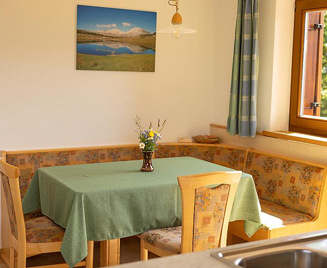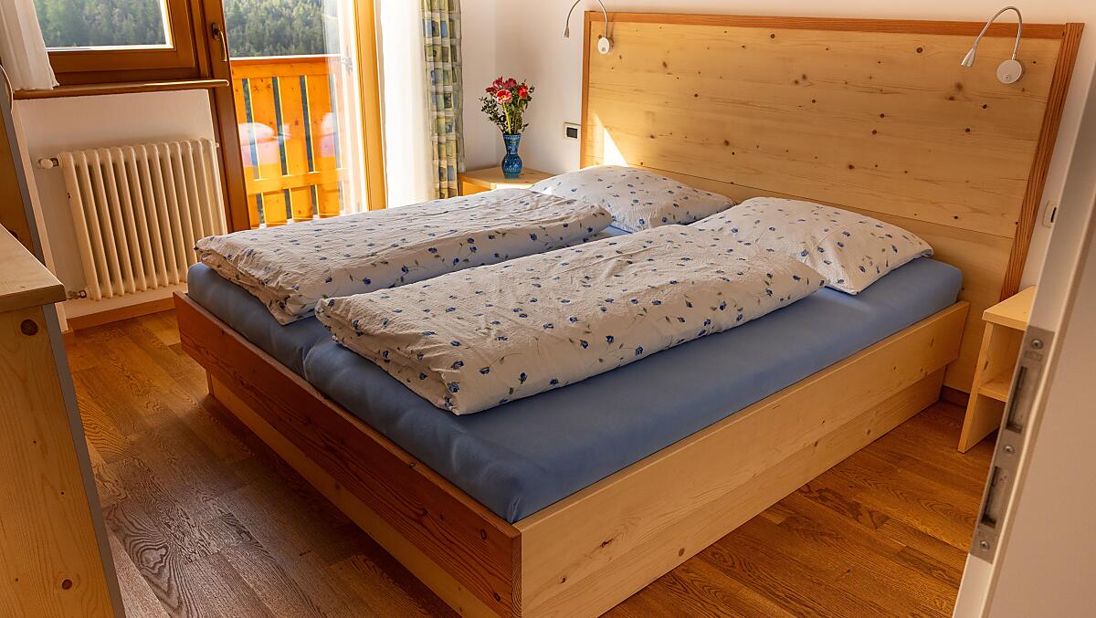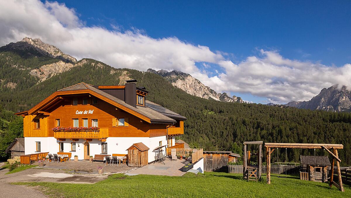 Drive in the direction of the Miara ski lifts in St. Vigil in Enneberg. Turn off right at the Miara valley terminal and follow the road that runs alongside the Miara lifts. After around 1.5 km (past 'Le Table' and 'Restaurant Chi Vai'), the asphalt road turns off left and you will reach a junction around about150 m. As soon as you see the red postboxes on the right-hand side of the road, keep left and follow the signs. After around 50 m, you'll reach the first few houses in 'Val dla Tor' village. Keep left here as well, go through the little village and our house is at the end of the group of houses.