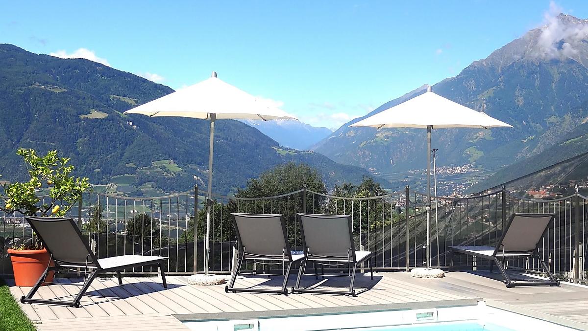 Do you know what luxury is? When the day begins barefoot in the morning dew on lush orchards, culminates in the late morning with a summit climb to one of the surrounding mountains and ends in the evening with a wonderful sunset with a good glass of wine. Breathe deeply, feel freedom. Be alone and yet feel safe in the apartments and exclusive chalets on our property. Clear air, sparkling snow on the mountain peaks, unspoilt nature and you in its midst. With time for the essentials. In tune with your inner rhythm. Take some time out and let yourself slow down in the middle of nature. Far away from the hustle and bustle and yet very close to Meran. And to Schenna (bus connection to the courtyard entrance) it is a stone's throw along the flower-lined path. High above the Merano valley basin with a view of the wide Etsch valley. With a lot of rest for parents while the children pet the bunnies and kittens, and with a lot of luck are there when the chicks hatch.