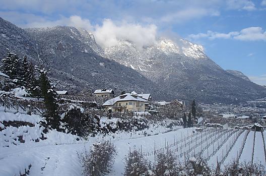 Nestled in vineyards and orchards, our newly built farm (climate house B) is in a wonderful, quiet location, yet only a 4-minute walk from the center of Girlan. Admire the wonderful view from the Rosengarten to Meran from our three comfortable holiday apartments, each with two separate double rooms. Here in Girlan you will find an idyllic old wine village with the most hours of sunshine in southern South Tyrol.