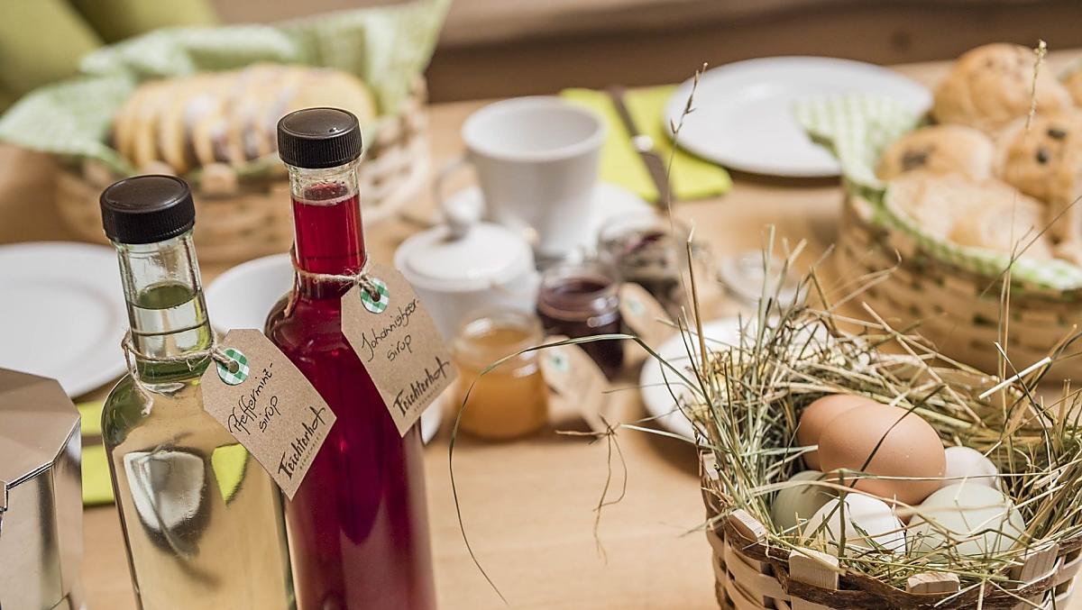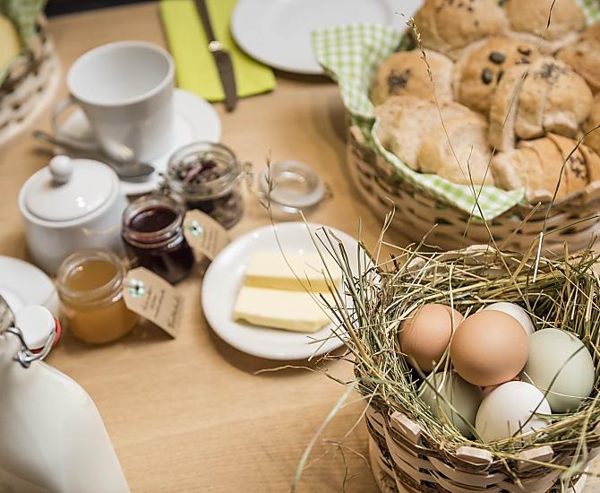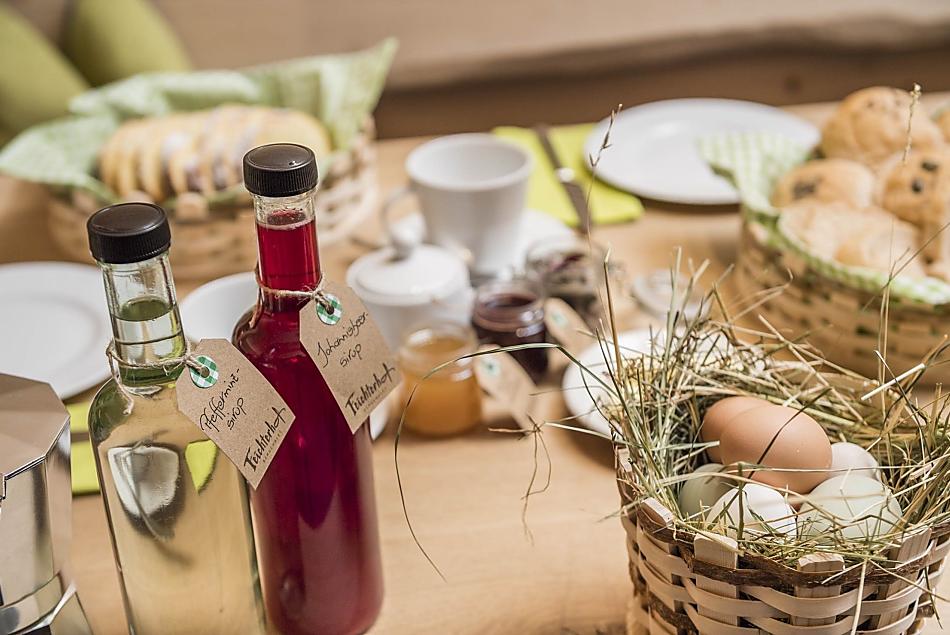 - Farm's own products at breakfast: milk, yoghurt, speck, sausages, eggs, fruit jams, cordial, jellies, herb teas, baked goods, fresh vegetables in season