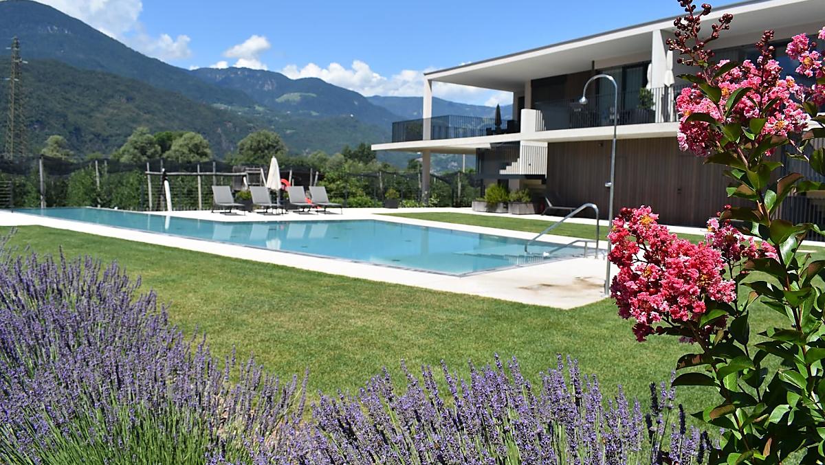 Enjoy your vacation on our newly built fruit farm in a quiet yet central location. Modern architecture and stylish furnishings with straight lines, natural materials and colors! Light-flooded and air-conditioned holiday apartments with a wonderful view through the panoramic windows of the Etschtal valley and the surrounding mountains. Unwind completely privately on the spacious terrace or in the middle of the large garden. Plunge into the 20 m long saltwater pool and take advantage of the many advantages for cyclists. With the natural playground ideal for families, but also the perfect starting point for sports, culture and enjoyment.