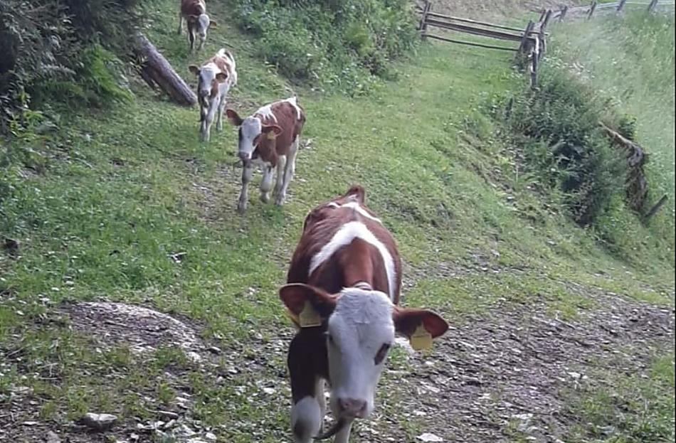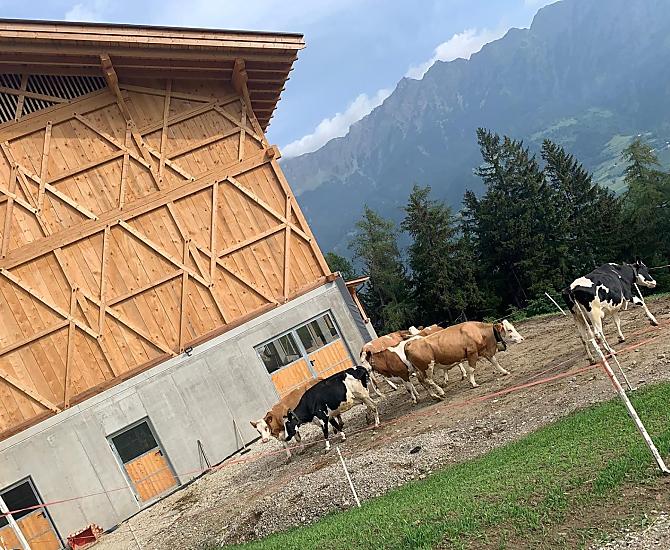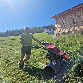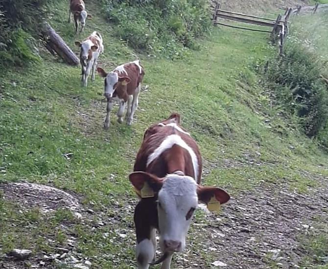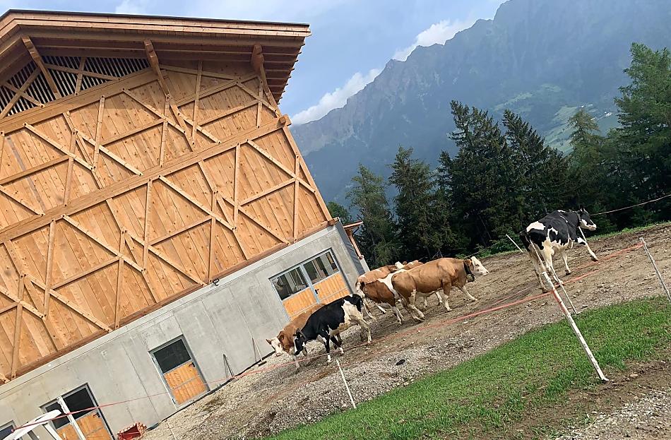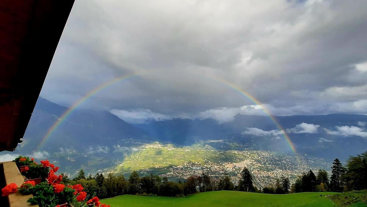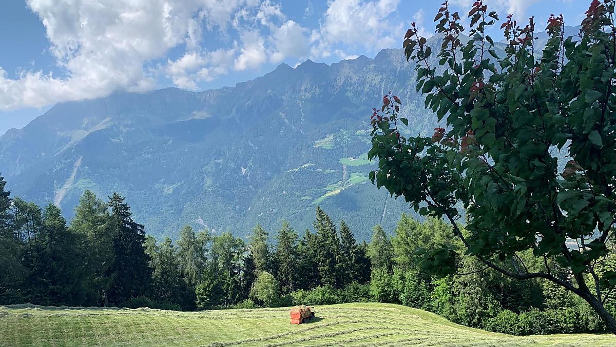 Our farm is nestled in lush meadows and fragrant forests at 1,000 m above the spa town of Meran with a wonderful panoramic view of the mountains, from Meran 2000 to the Ifinger, over the Hirzer to the Passeier valley and the Texelgruppe mountains. Our newly built stables provide shelter for our cows, goats, sheep, chickens, ducks, a pony, dog and cats.