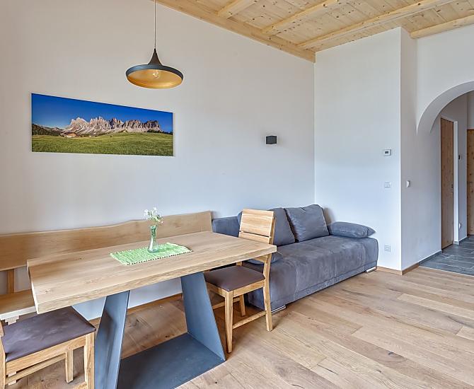 In a quiet and sunny location above the Eisacktal valley, the Frühaufhof on the outskirts of the mountain village of Barbian with the best view of the Dolomites invites you to an exciting farm holiday. Despite the quiet location, the village centre with restaurants, a bakery and a shop can be reached in a few minutes on foot.