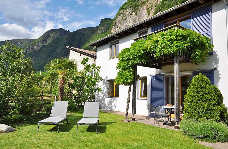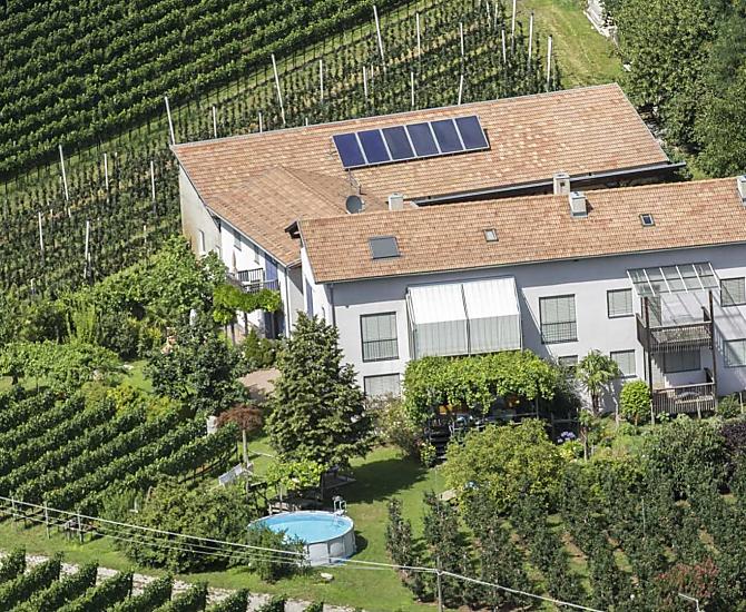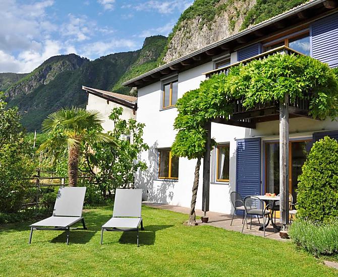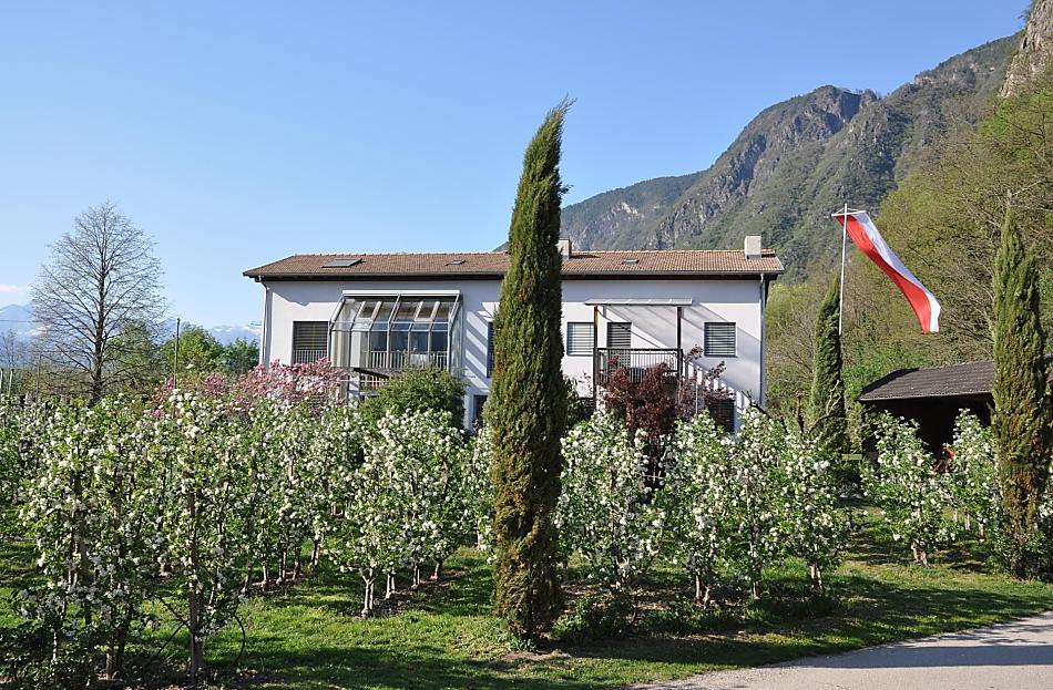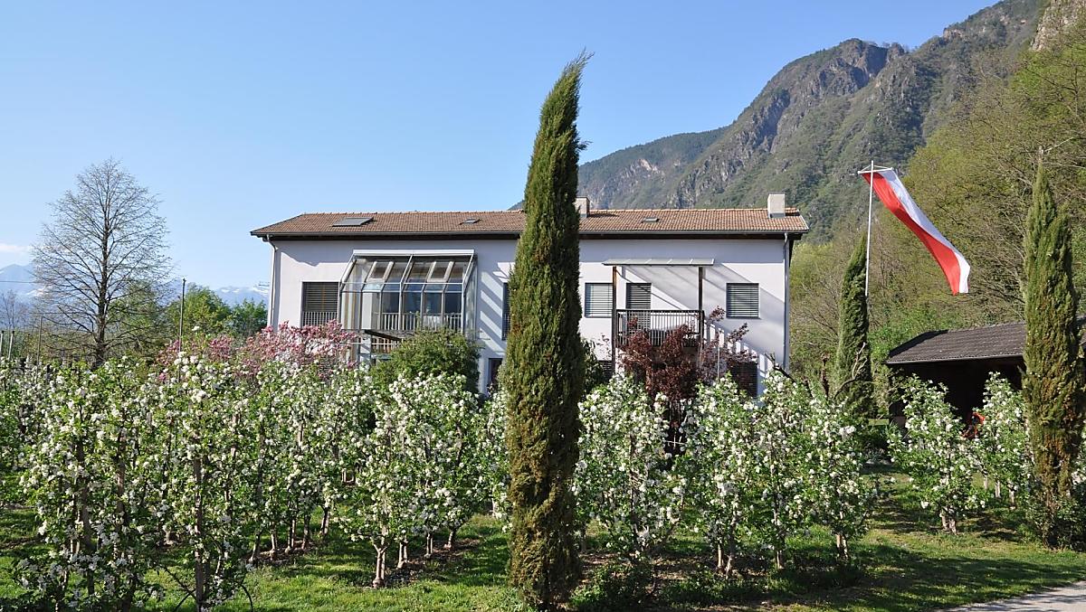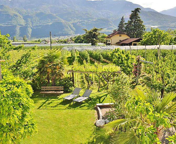 Our Ganderhof is very quiet in the midst of our own apple trees and vines and faces south-west. It is right between the capital of Bozen and the spa town of Meran. Ideal for bike trips to the south of South Tyrol or to the Meraner Land region. The village centre as well as the bus stop and the train station are within walking distance.