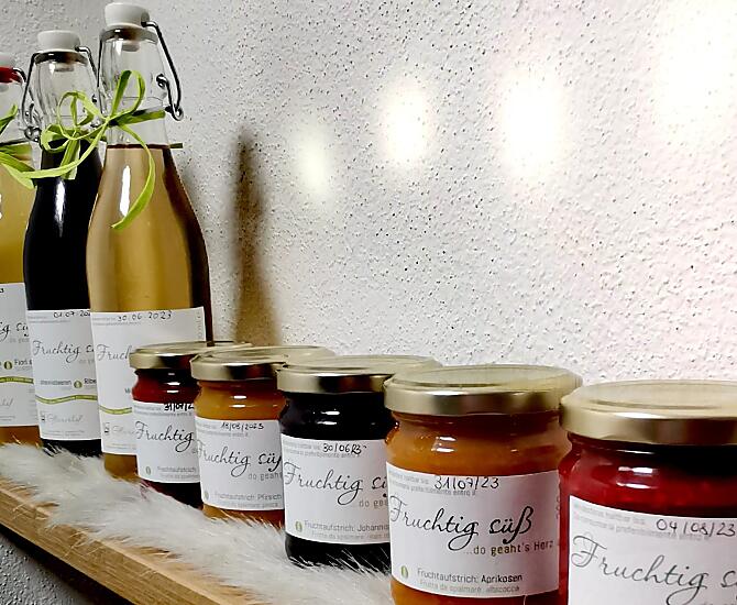 - Farm's own products at breakfast: speck, eggs, fruit jams, cordial, fruit juice, herb teas, seasoning, baked goods, fresh vegetables in season, fresh fruit in season