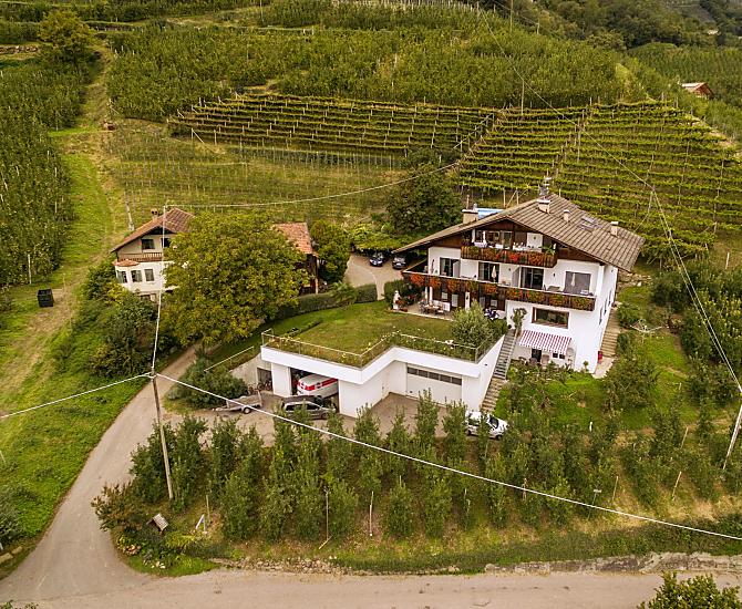 The farm is surrounded by orchards and wineries and in the immediate vicinity of the Marlinger Waalweg path.