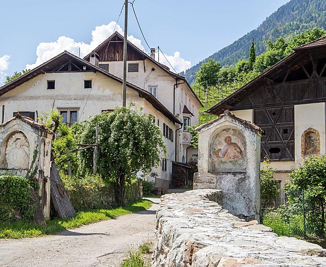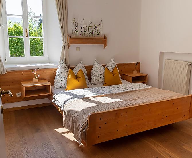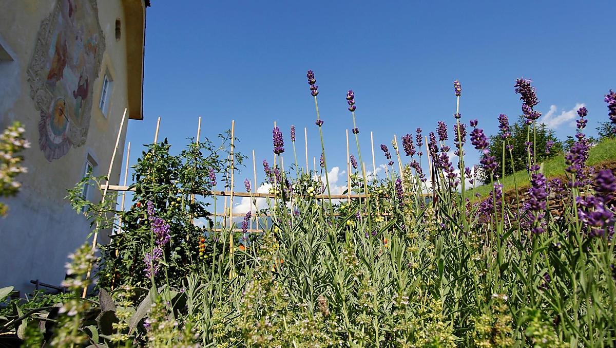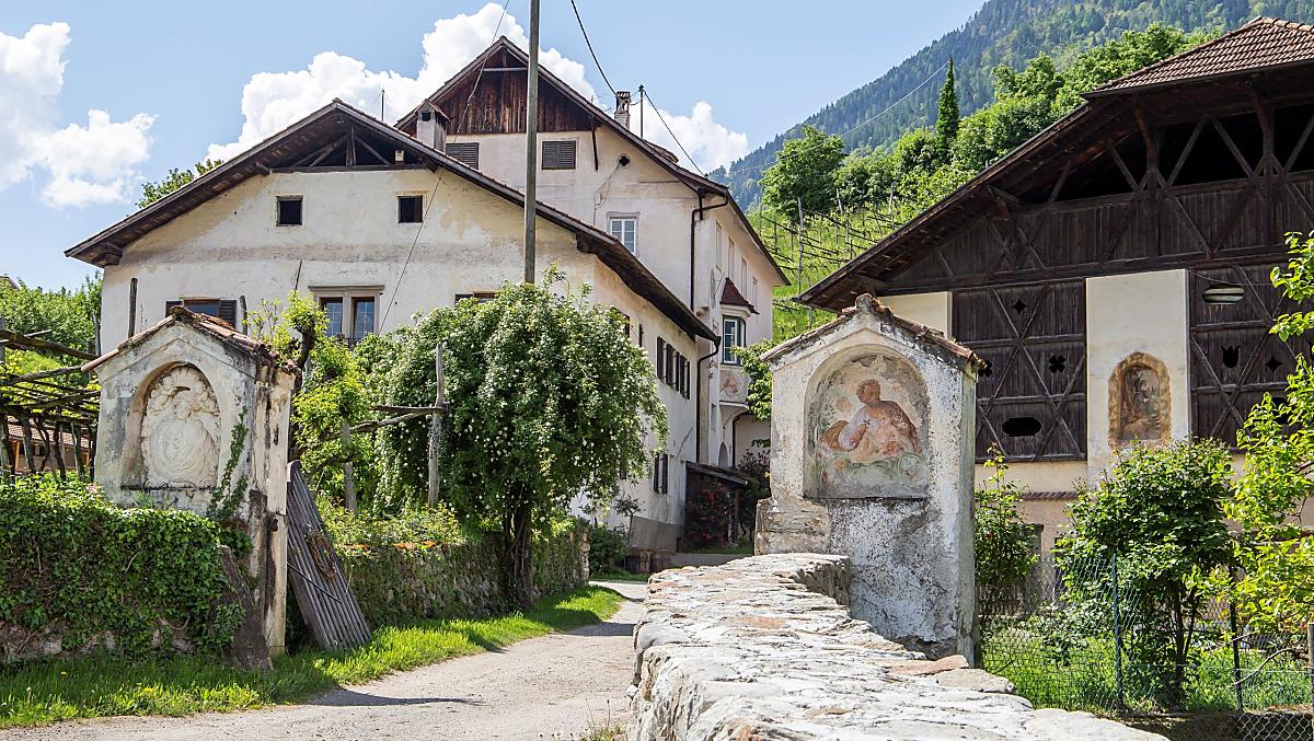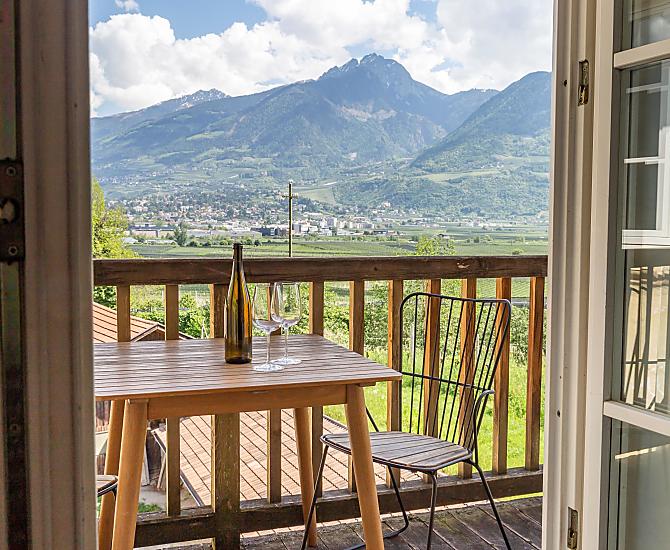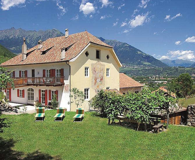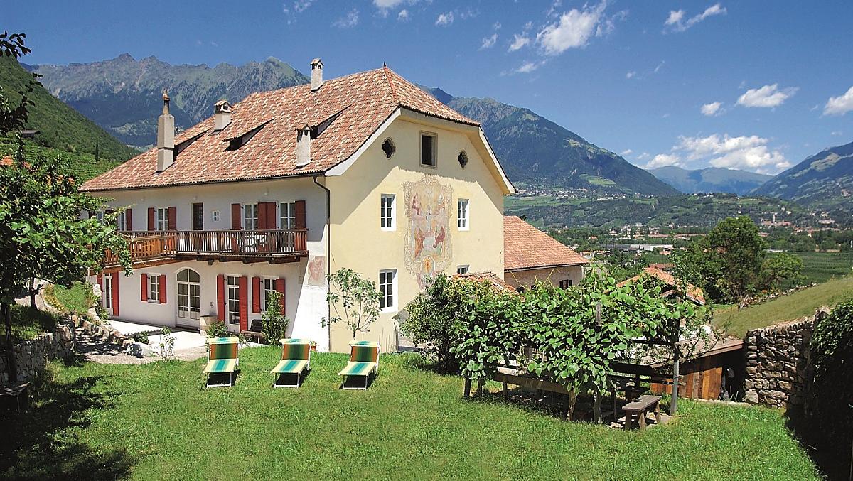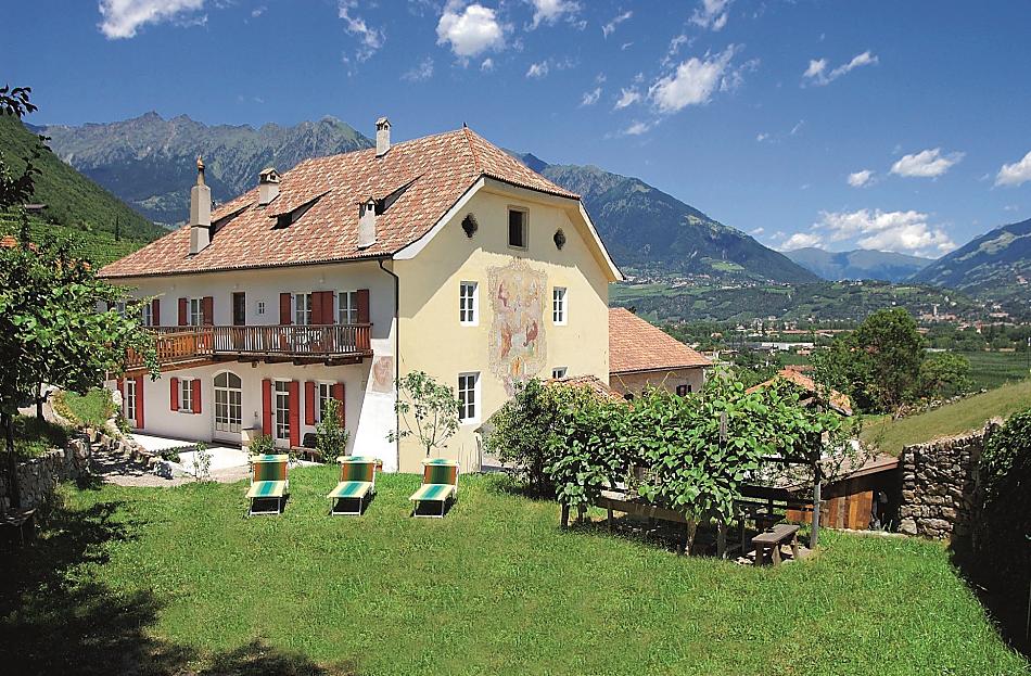 The Goidnerhof is located in the quiet green, surrounded by various fruit trees and vines, with a wonderful view of the spa town of Meran.