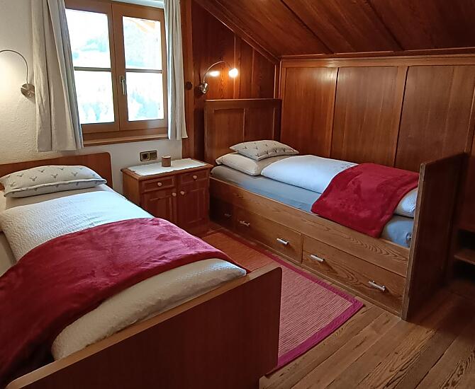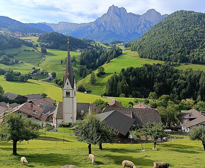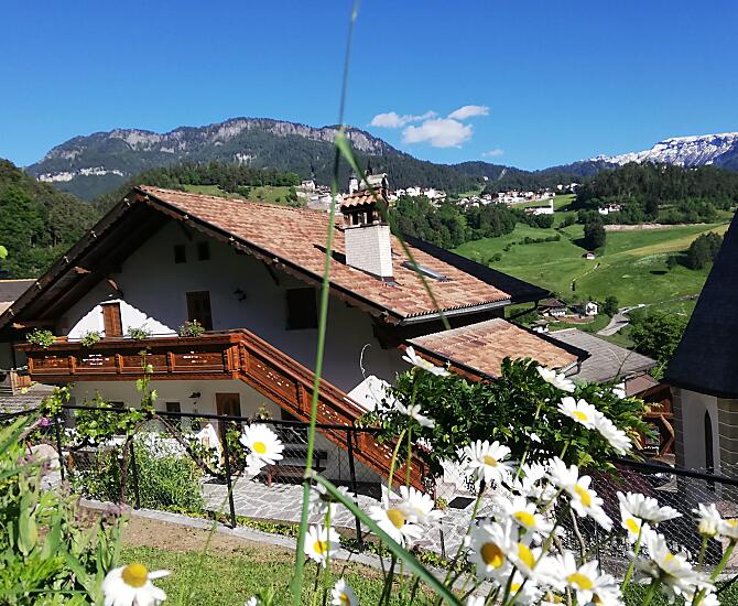 In the centre of the hamlet of Tisens in the municipality of Kastelruth, far away from noise, lies the sun-drenched Gosthof. First mentioned in records in 1494 and lovingly renovated, our two spacious holiday flats invite you to enjoy life. After a delicious farmhouse breakfast, the children can feed the animals and play in the large garden while you relax on the sunbathing lawn. Lots of hikes are possible from the farm, e.g. to the school museum in Tagusens. The valley station of the Seiser Alm cable car is just five minutes away by car, which takes you up to the Seiser Alm pasture with its practically inexhaustible hiking opportunities in summer and kilometres of pistes in winter!