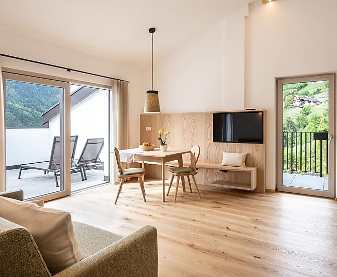 Numerous hiking trails lead through the beautiful, historically shaped low mountain range landscape of the Eisacktal valley to the sunny high pastures with a wonderful panoramic view of the Dolomites opposite.