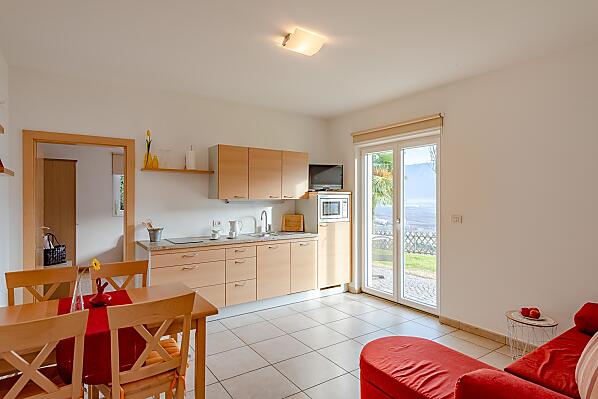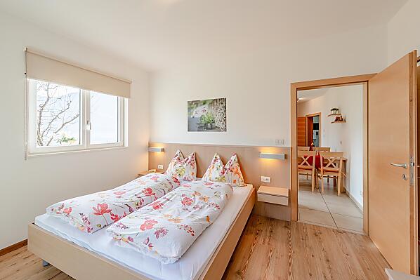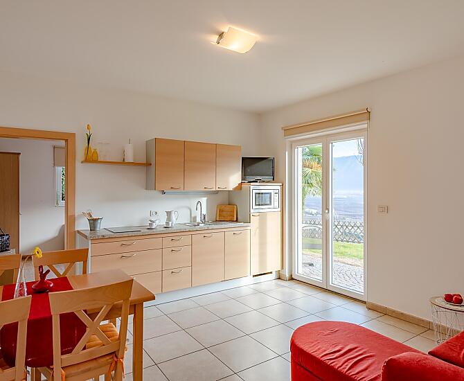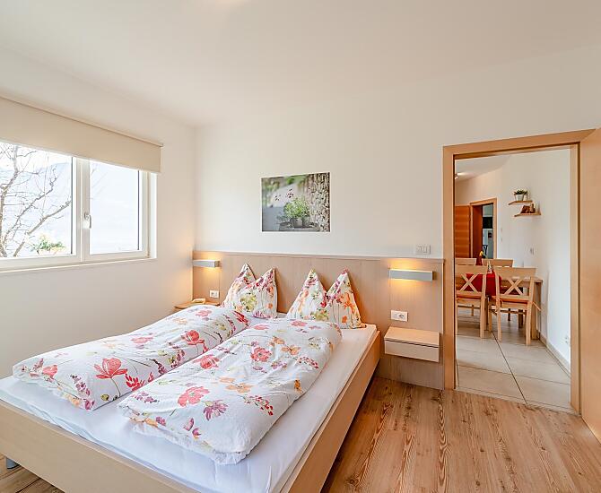 Our farm is surrounded by our own Gewürztraminer vines. We also produce Pinot Blanc, Sauvignon and Vernatsch. We deliver the grapes to a small, family-run winery. The largest agricultural part is apple production. Since we built the farm in 2011, we have been offering our guests four comfortable holiday apartments with a wonderful panoramic view of the South Tyrolean lowlands.