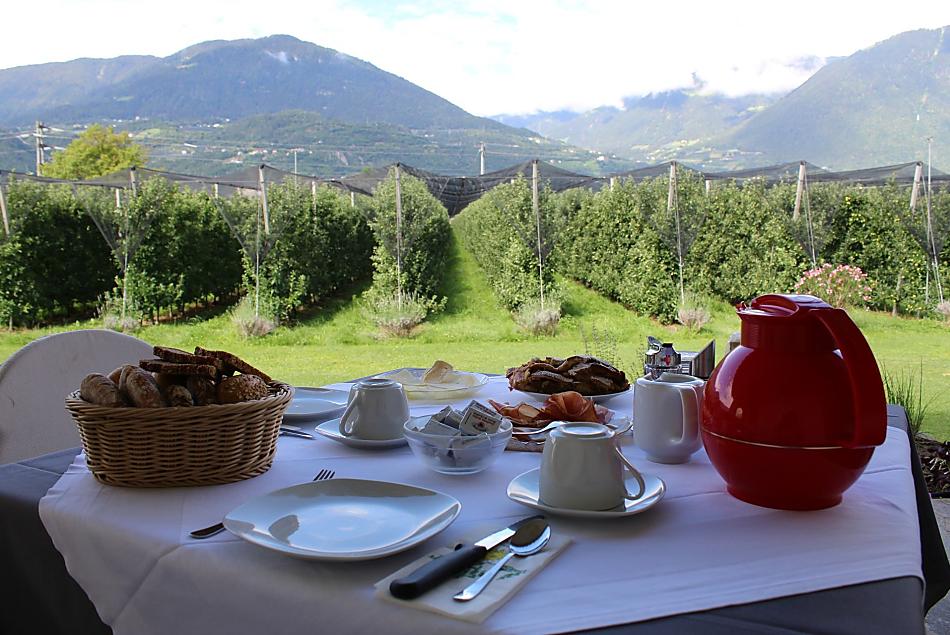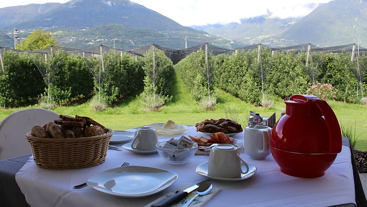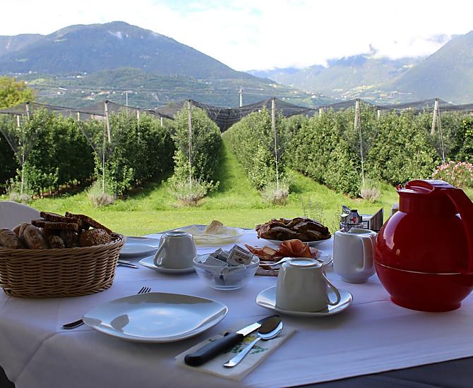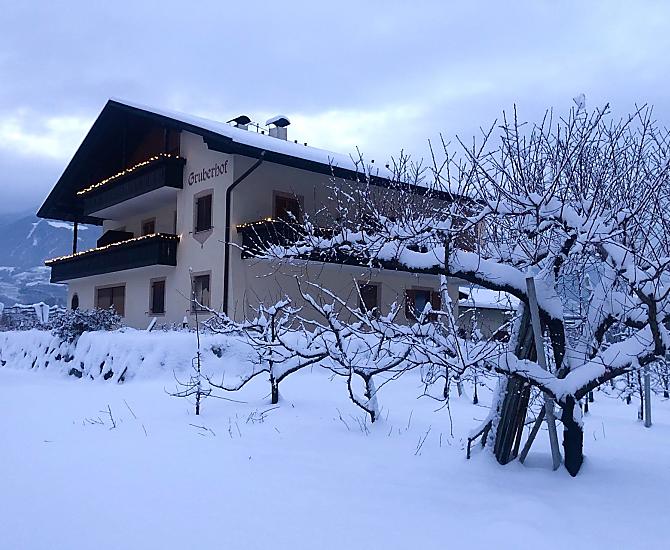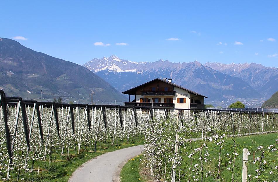 The Gruberhof is located in the heart of the Etschtal Valley, between Meran and Bozen. With its quiet and sunny location, it offers the best conditions for a relaxing holiday. Furthermore, it is directly connected to the South Tyrolean network of cycle paths; therefore it offers an ideal starting point for bicycle and mountain bike tours from the farm. Numerous hikes and excursions by bus and train are also possible, since the train station and the cable car to Vöran are practically on the doorstep. After a hike, bike tour or excursion, you can cool off and relax in the Lana outdoor pool (600 m) or in the Gargazon natural bathing pond (5 km).