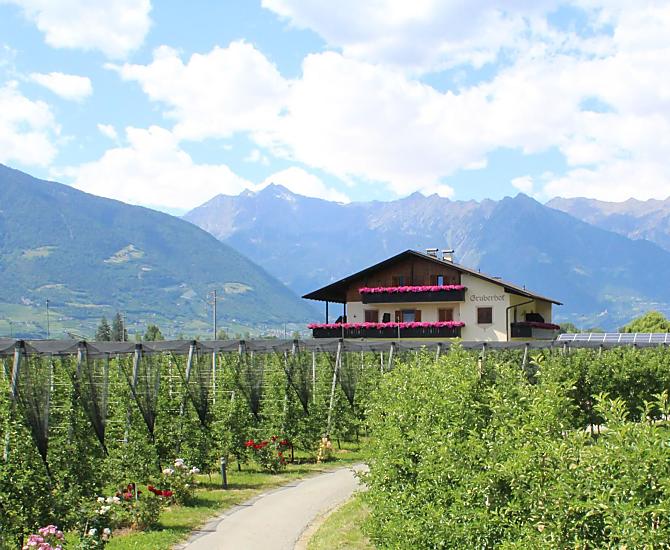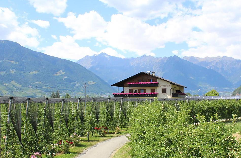 Coming from Meran, take the MeBo expressway at the “Lana-Burgstall” exit and turn left in the direction of Burgstall. Halfway down you will find a sign that says "Gruberhof" and turn left there.