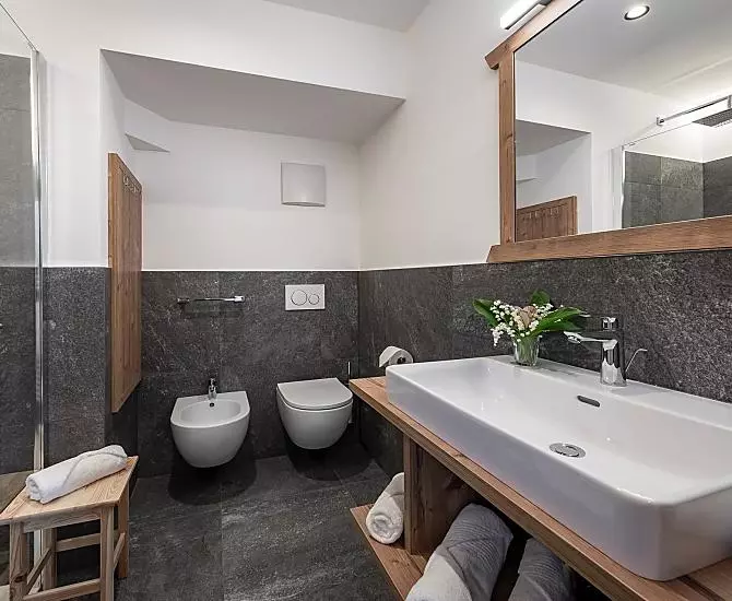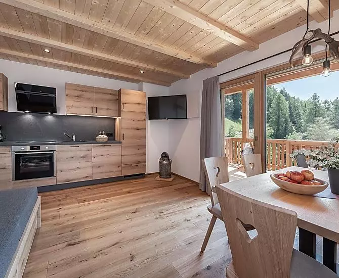 The Gschlunerhof is located in the idyllic village of St. Oswald near Kastelruth and amidst the Dolomites. Guests have been welcomed to the Gschlunerhof for over 50 years. So that our guests still feel comfortable with us after such a long time, the holiday apartments were renovated in autumn-winter 2021/2022 and rebuilt in natural wood.