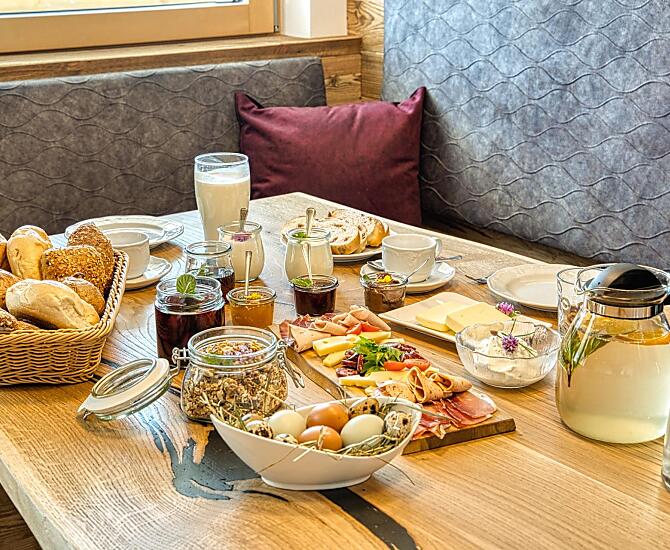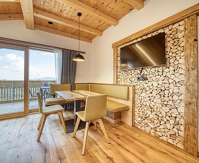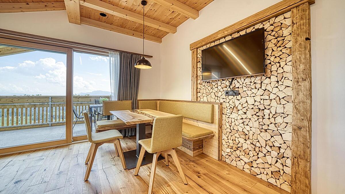 Our mountain farm is a hereditary farm and is situated at 1,400 m above sea level in a very sunny and quiet location on the beautiful Tschögglberg plateau, surrounded by green meadows and a well tended larch meadow in the middle of lush nature. We are happy to let you take part in everyday farm life and experience life on a mountain farm at first hand.