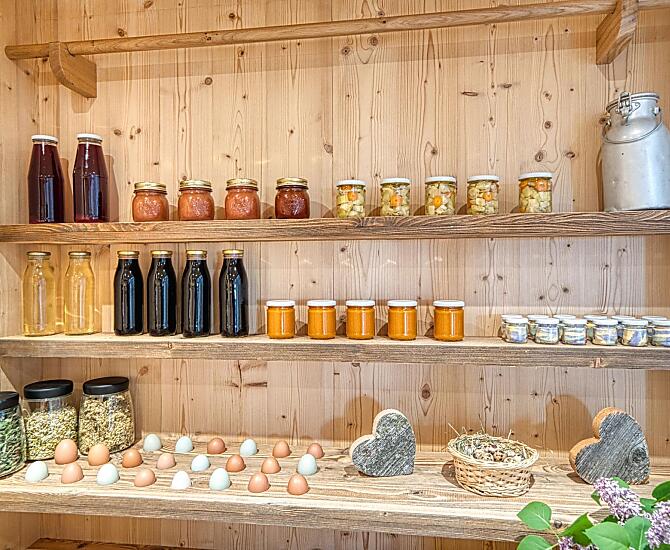 - Farm's own products at breakfast: milk, yoghurt, cheese, eggs, fruit jams, cordial, jellies, pickles, herb teas, seasoning, baked goods, fresh vegetables in season, fresh fruit in season