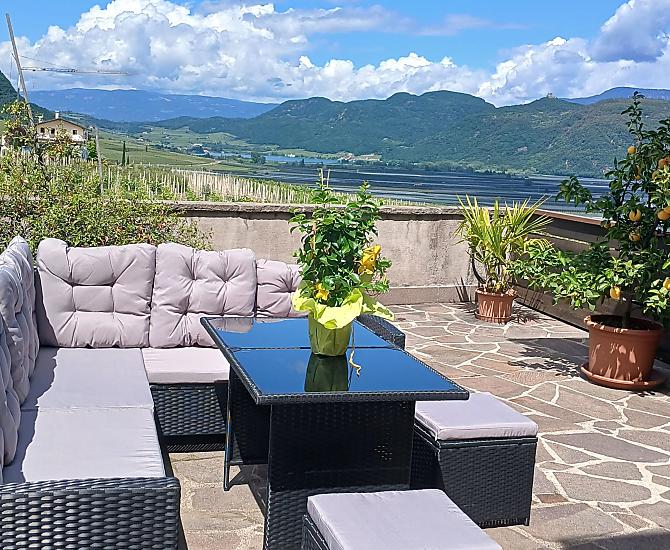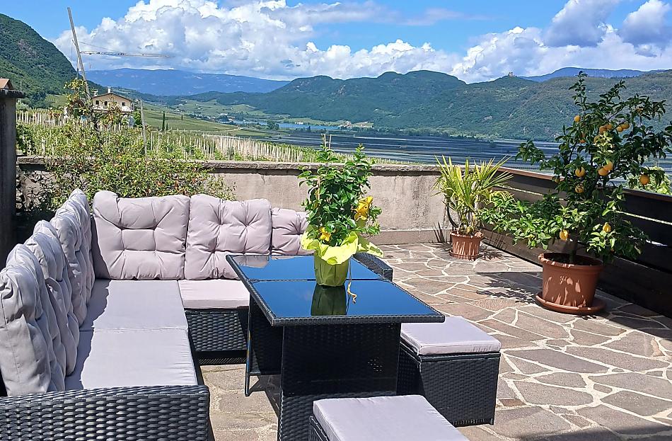 The view over the vineyards extends to Lake Kaltern. The nearby bus stop and the free Mobil Card we provide invite our guests to explore South Tyrol in an environmentally friendly way using public transport. Cycle paths and hiking trails are also in the immediate vicinity of our farm and contribute to a comfortable holiday.