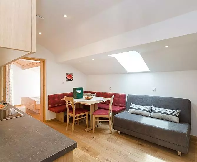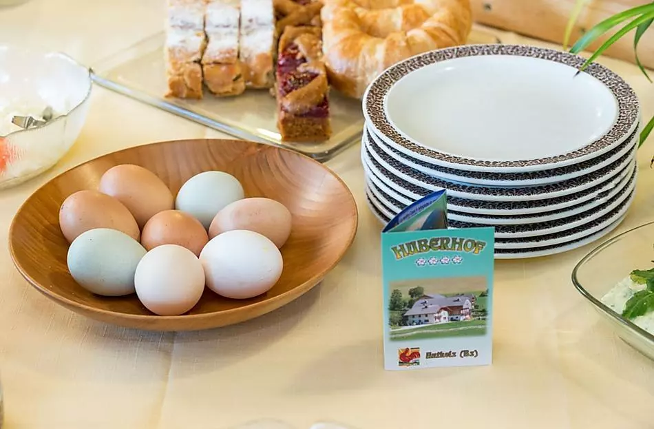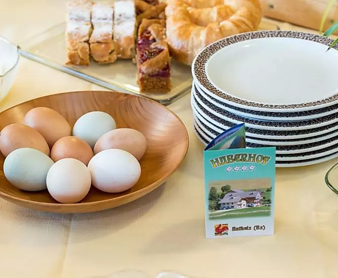 - Farm's own products at breakfast: milk, yoghurt, other milk products, speck, sausages, eggs, fruit jams, cordial, jellies, pickles, herb teas, seasoning, baked goods, fresh vegetables in season, fresh fruit in season