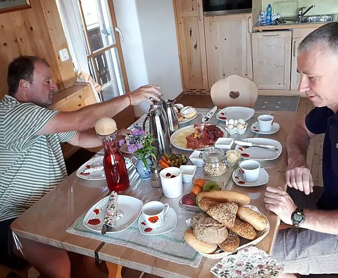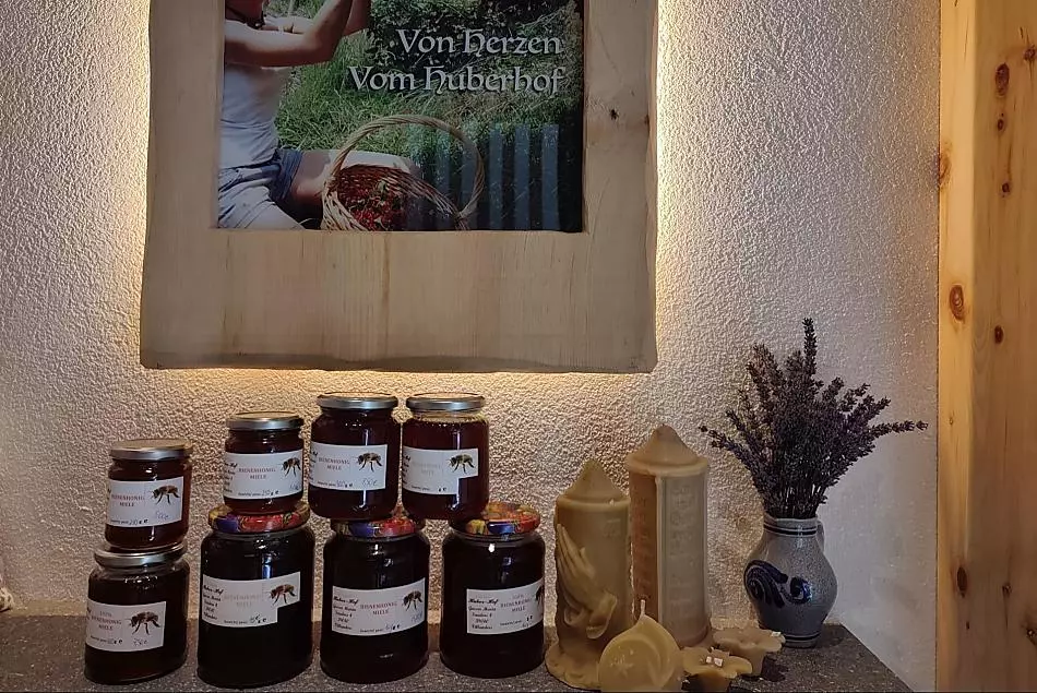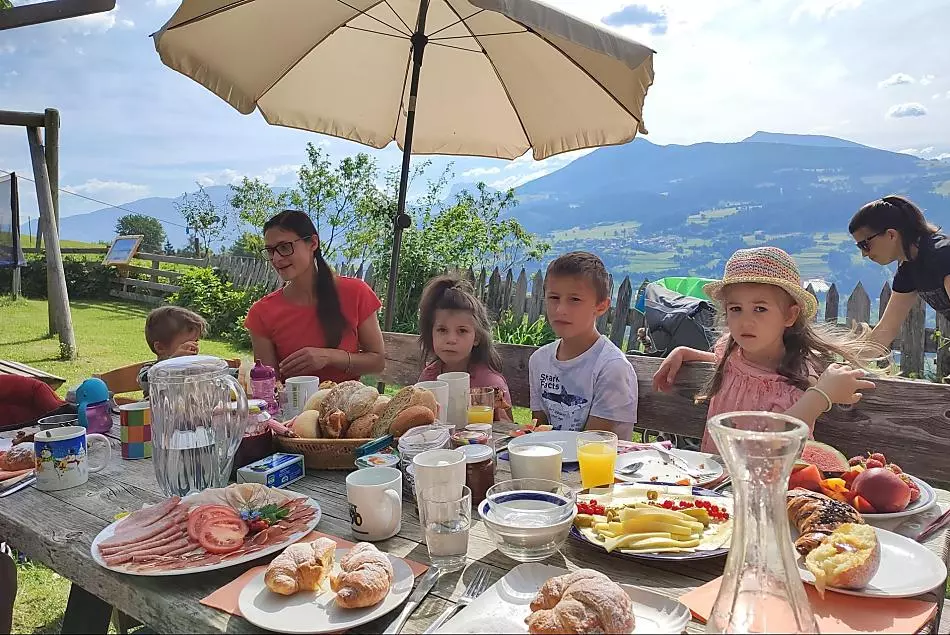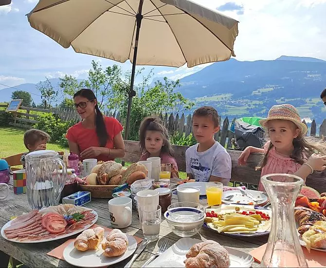 - Farm's own products at breakfast: milk, speck, eggs, honey, fruit jams, cordial, fruit juice, dried fruit, pickles, herb teas, bread, grain , baked goods, fresh vegetables in season, fresh fruit in season