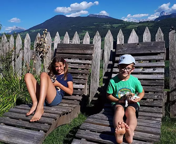 Take the Klausen/Grödnertal valley motorway exit. At the roundabout, take the second exit on the right onto the country road in the direction of Klausen-Bozen. At Klausen (shortly after the tunnel) the road branches off to the right towards Villanders. Follow this mountain road and after about 5 km you will reach the village of Villanders. Our farm is about 2 km from the town center on the road towards Sauders. The approach is well signposted.