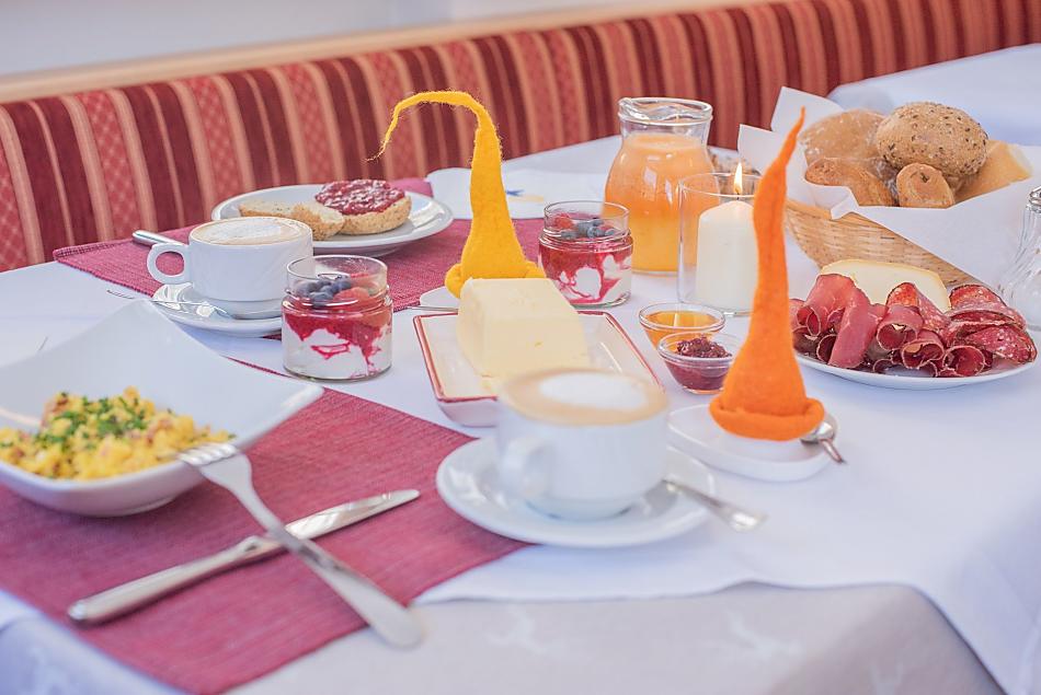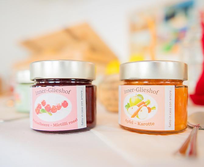 - Farm's own products at breakfast: milk, yoghurt, cheese, butter, speck, cured beef, sausages, eggs, honey, fruit jams, cordial, fruit juice, dried fruit, herb teas, seasoning, bread, baked goods, fresh vegetables in season, fresh fruit in season